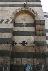 Une longue inscription sur le mur et l’iwan à l’intérieur décrit et détaille avec précision une très importante dotation pour la mosquée. Une seconde inscription de fondation parcourt la façade (ill.4-6), elle décrit aussi, précisement, une importante dotation, elle inscription se poursuit sur le côté est de l’édifice et mentionne le bain de l’émir, le hammam Tawrizî, construit en 826/1423 juste à côté de la mosquée. Ces deux inscriptions mentionnent des biens se trouvant autour de Safed, elles nous apprennent ainsi que Ghars al-Dîn a été en poste dans cette région avant de venir à Damas.