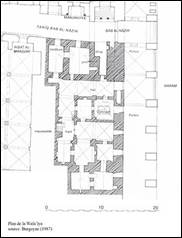La zawîya, construite avant 782/1380, occupe le rez de chaussée d’une construction antérieure, probablement Ayyûbide (ill.1). L’étage accueillait les logements de la famille Abû’l-Wafâ’, les fondateurs originaires du Wadî al-Nusûr, à l’ouest de la ville.[1] Un troisième étage est ajouté sous les Ottomans.