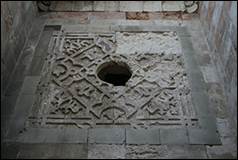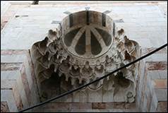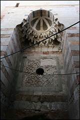 Le portail est, délimité par un encadrement, présente des assises en ablaq rouges et blanches dont une assise de blocs festonnés, il est surmonté d’une voûte à muqarnas ; un grand panneau géométrique occupe la baie (ill.7-13).
