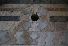 Le portail central trilobé comprend des assises colorées et un médaillon géométrique (ill.14-16).