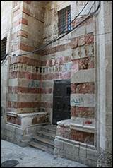 La ruelle où est construit l’édifice est en pente et culmine à 10m au-dessus du Haram (ill.2, 5, 6). Le rez de chaussée est occupé par des étables (istabl) et les salles principales sont à l’étage (ill.1). Une grande salle de réception (qa'a) profite de la déclivité du terrain pour offrir un panorama sur le Haram. L’édifice comporte trois portails richement ornés (ill.7-23) :