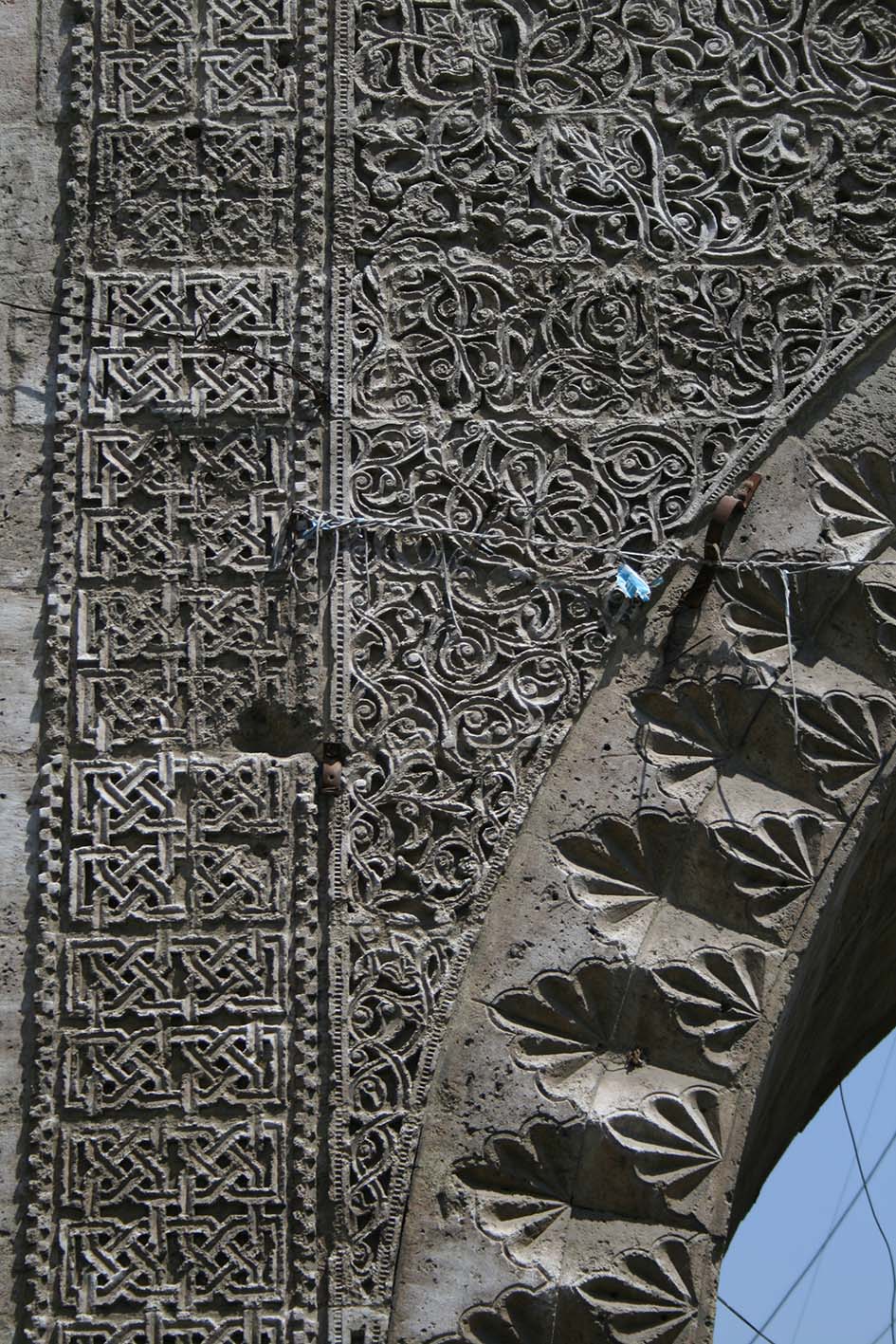 C’est un des plus ancien khân extra-muros. Le décor végétal du portail (ill.6-8) montre des similitudes avec celui du hammam Carsi à Adana en Cilicie (Turquie), ce hammam étant daté de 936/1529. A noter le tracé préparatoire d’une palmette à la base gauche de l’arc d’entrée (ill.6).