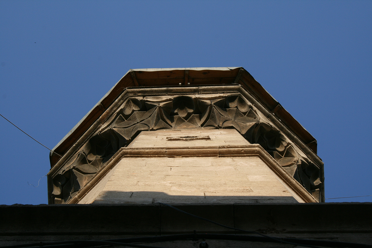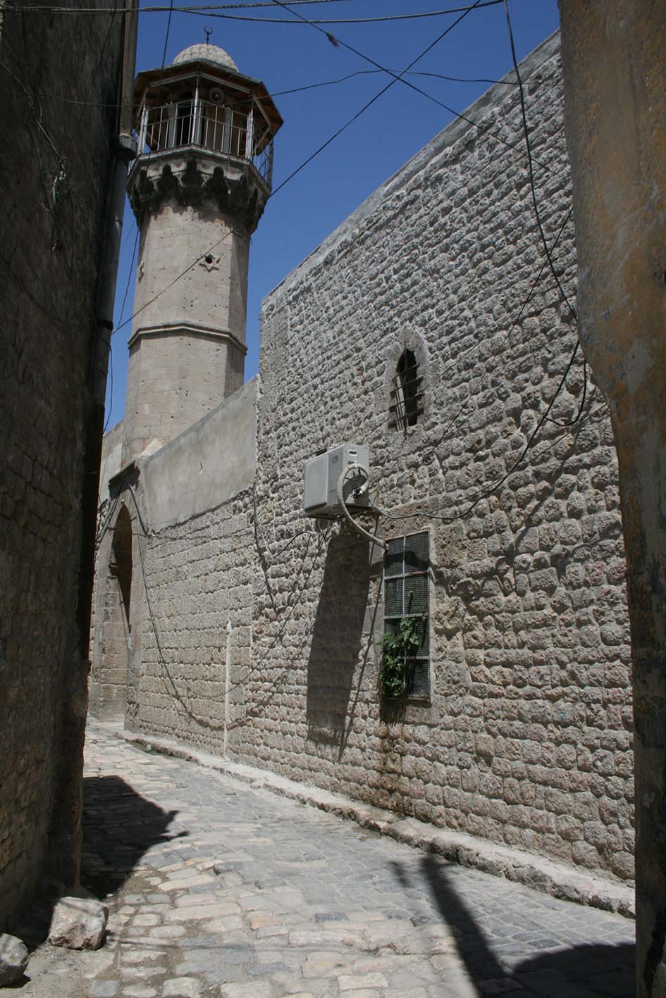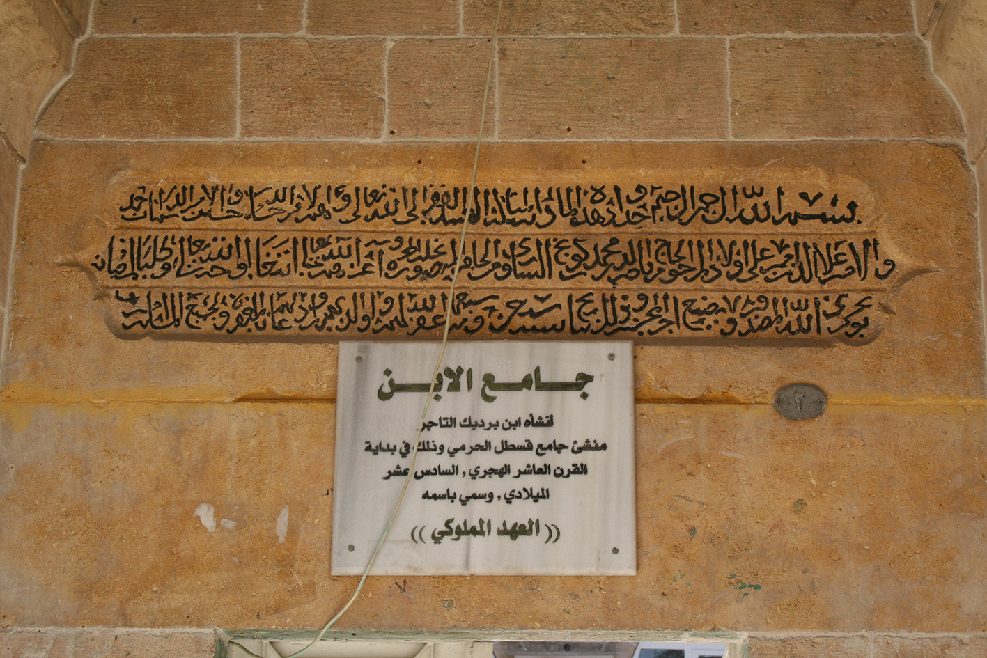L’édifice est daté par l’inscription du portail (ill.7) qui mentionne la restauration du minaret (ill.1, 4, 5) par trois frères, Husâm, Shihâb et ‘Alî. Une autre inscription non datée sur le mihrâb fait part d’une restauration à la fin de la période Mamluk.