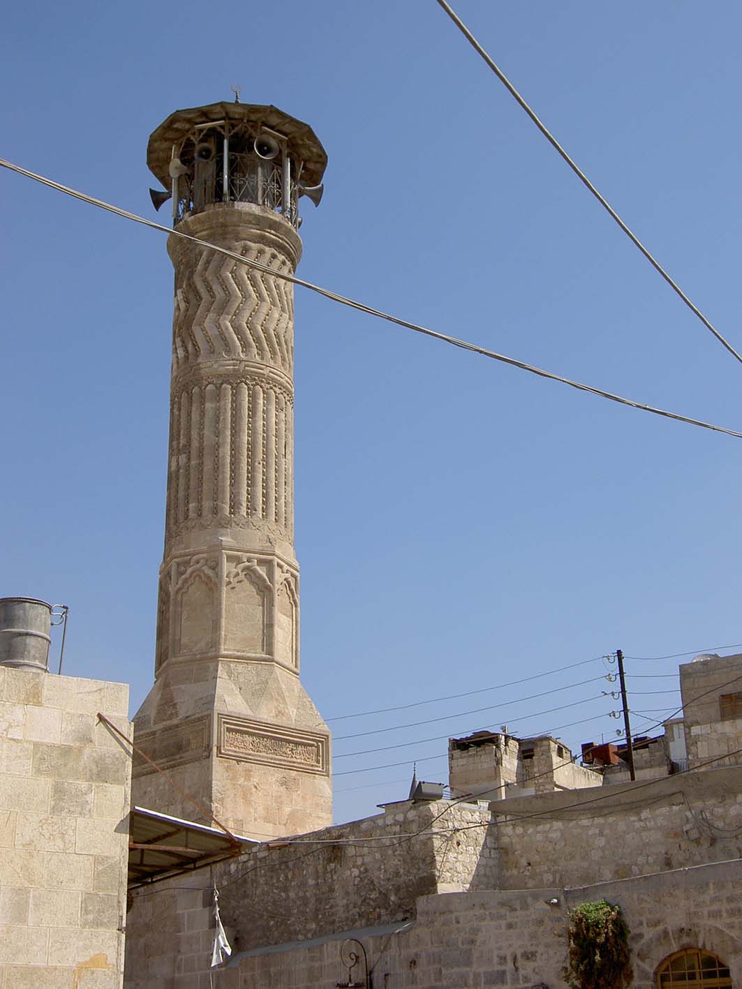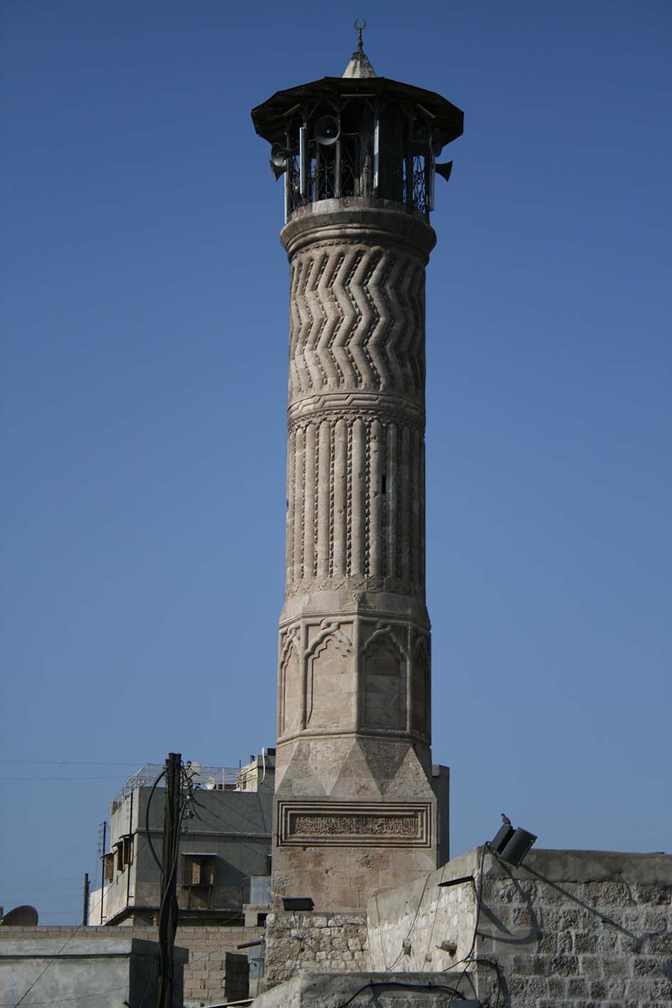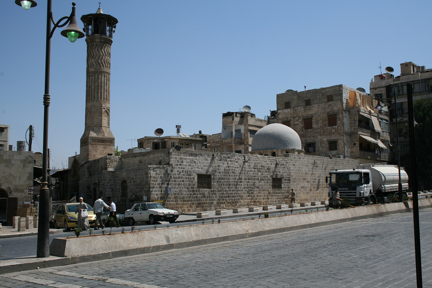 La mosquée est fondée en 702/1303 par Husâm al-Dîn al-Hasan, elle est dotée d’une fondation le 10 shawwal 702/28.V.1302. L’édifice est complété en 756/1355 par le portail et le minaret qui pourraient donc dater de cette période. Une restauration est documentée après le séisme de 806/1404.