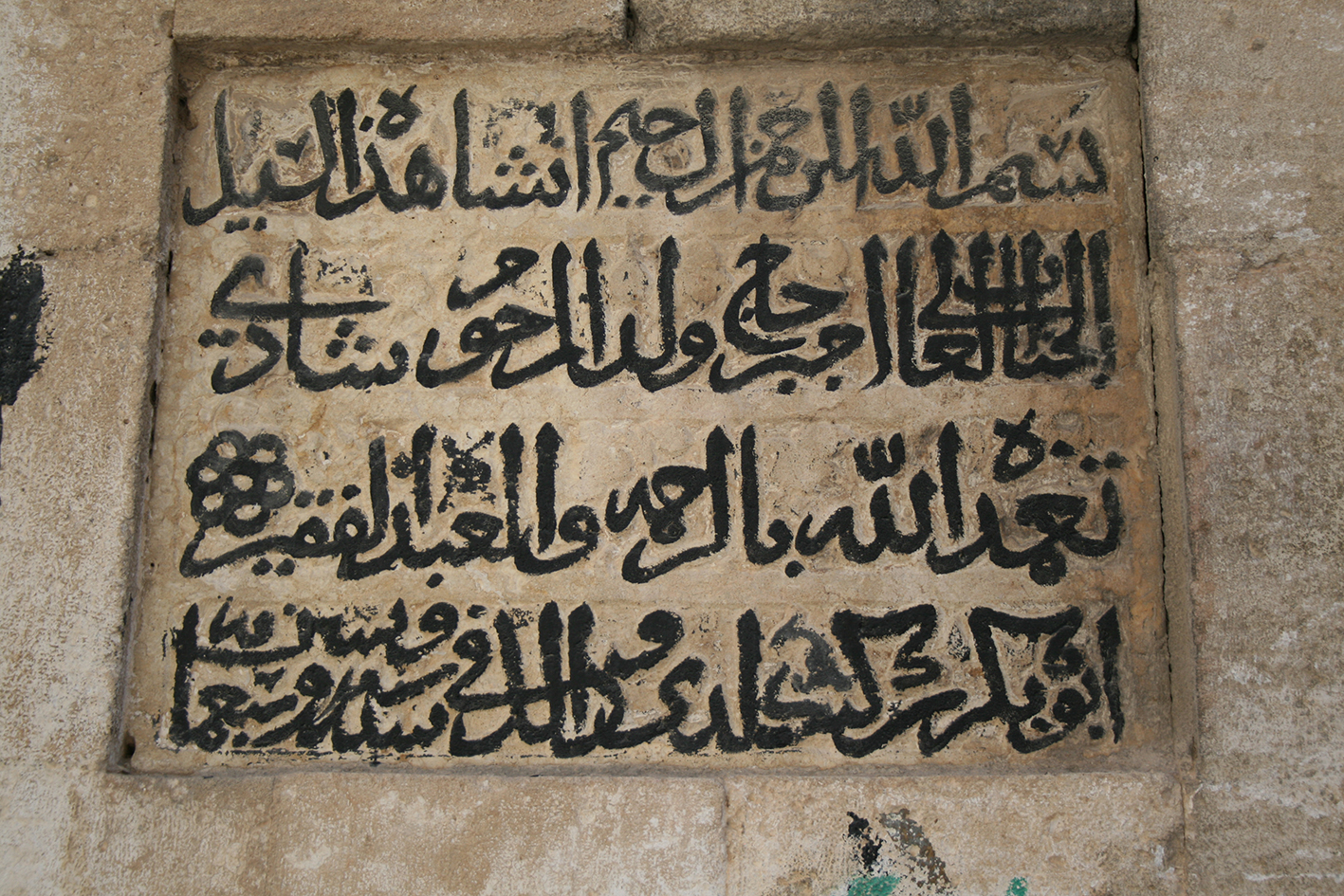 799/1397. Texte de fondation 2 lignes sur une planchette de bois (63x95) encastrée sur le mur sud à gauche du mihrâb.[6]