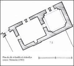 Dans la partie ouest d’al-Salihîye, le sultan al-Ashraf Mûsâ (r.626/1229-635/1237) a fait construire un dâr al-hadîth pour le savant hanbalite Jâmal al-Dîn ‘Abdallâh ibn Surûr al-Muqaddasî. Ce petit complexe comprend une salle et un mausolée à coupole occupant l’angle du côté sud de la rue principale ; les éléments autour d’une cour (cellules résidentielles, salle de prière, etc.) ont disparu (ill.1).