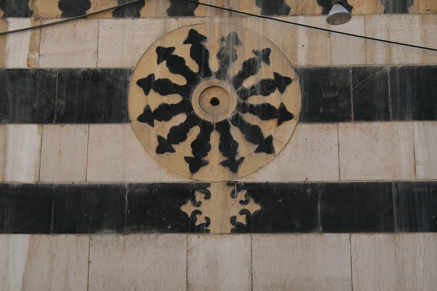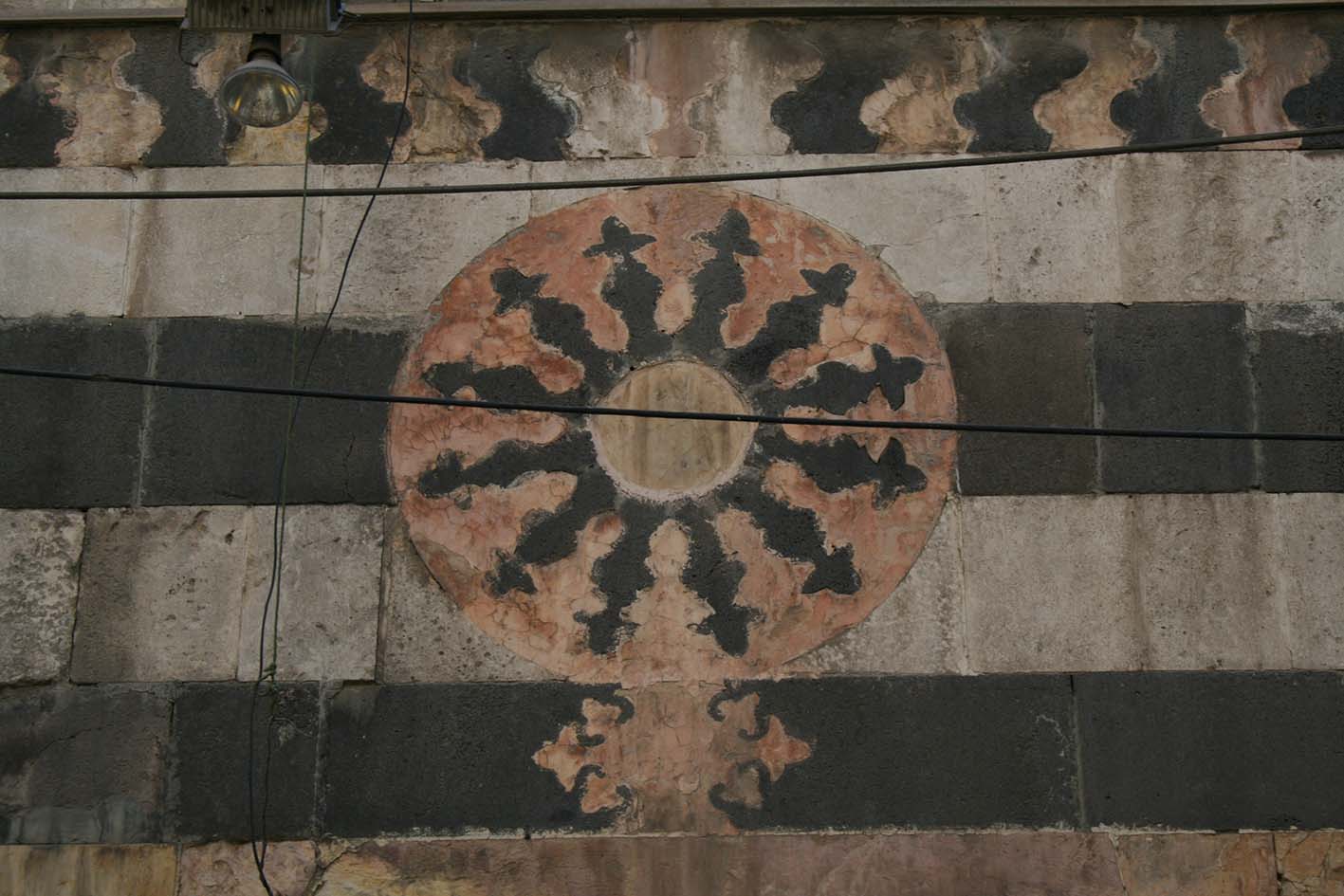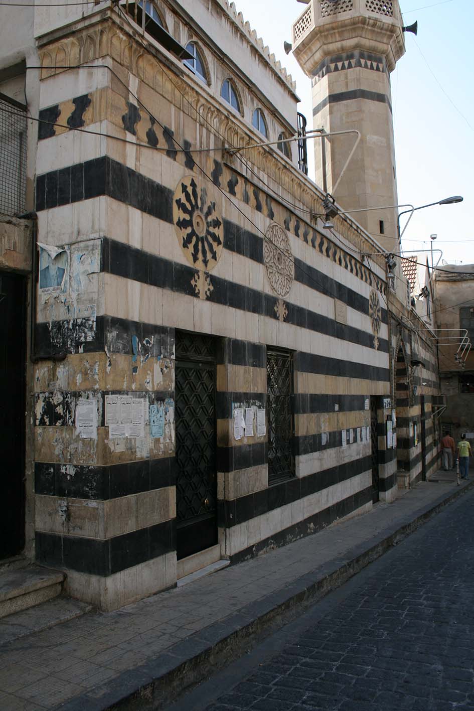 L’édifice présente une façade en ablaq richement ornée d’une frise (ill.1-4) et de médaillons surmontant chaque ouverture (ill.6-9). Un minaret s’élève au-dessus du portail d’accès.