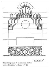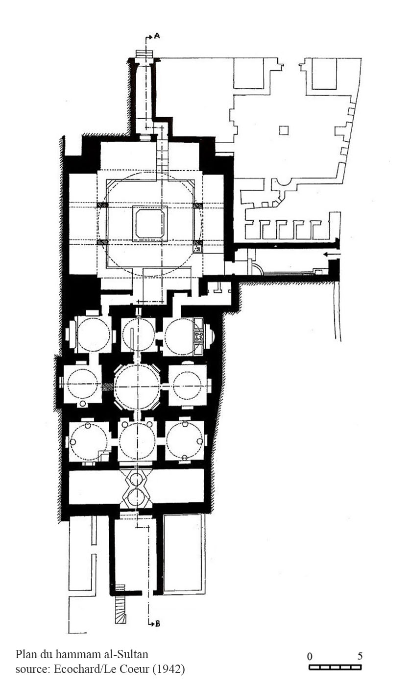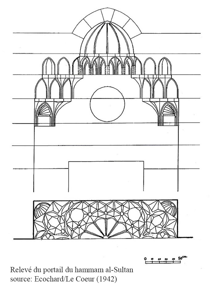 Le médaillon inscrit sur le portail (ill.6, 8) mentionne une restauration ou un remplacement du bain sous le sultan al-Ashraf Qaitbay (r.6 rajab 872/31.I.1468 – 27 dhu’l-qa’da 901/7.VIII.1496) dans les années 1490 qui semble inclus dans un complexe plus important.