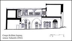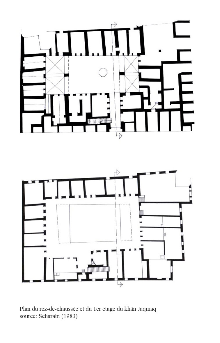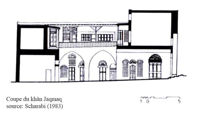 La configuration Ottomane de l’actuel édifice serait l’œuvre de Hasan Pacha Surbazî vers 1601. Il présente deux portails quasi identiques en façade (ill.3, 4). La cour intérieure est entourée de salles sur deux niveaux (ill.1, 5-7).