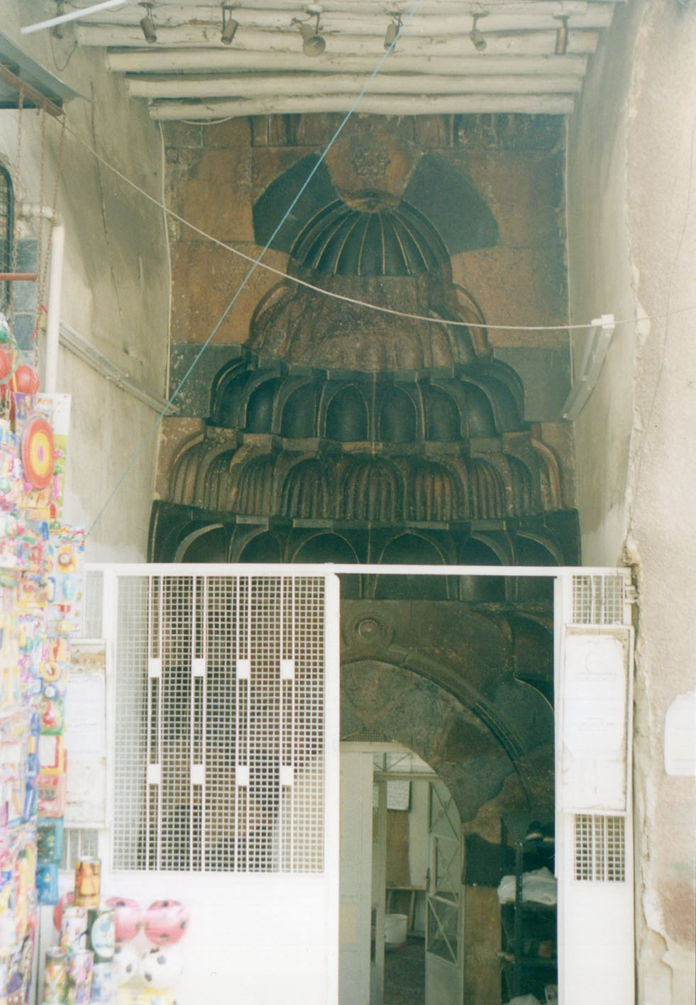 La façade sur rue, la salle de prière et le mausolée forment une surface triangulaire permettant une orientation correcte (ill.1). Le minaret à l’angle ouest semble être un ajout ultérieur. Dans la niche du portail (ill.5), la porte est couronnée par une arche brisée avec motifs en forme de cloche au lieu du linteau plat habituel (ill.6) ; des pendentifs remplacent les trompes habituelles à la base des muqarnas, et les consoles dépassent de l’extrémité supérieure (ill.6, 7).