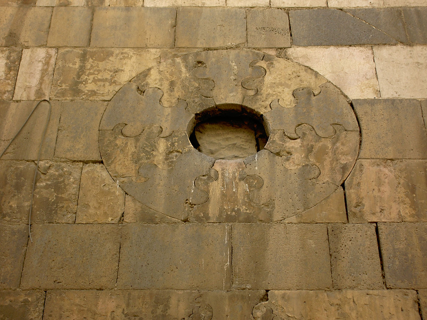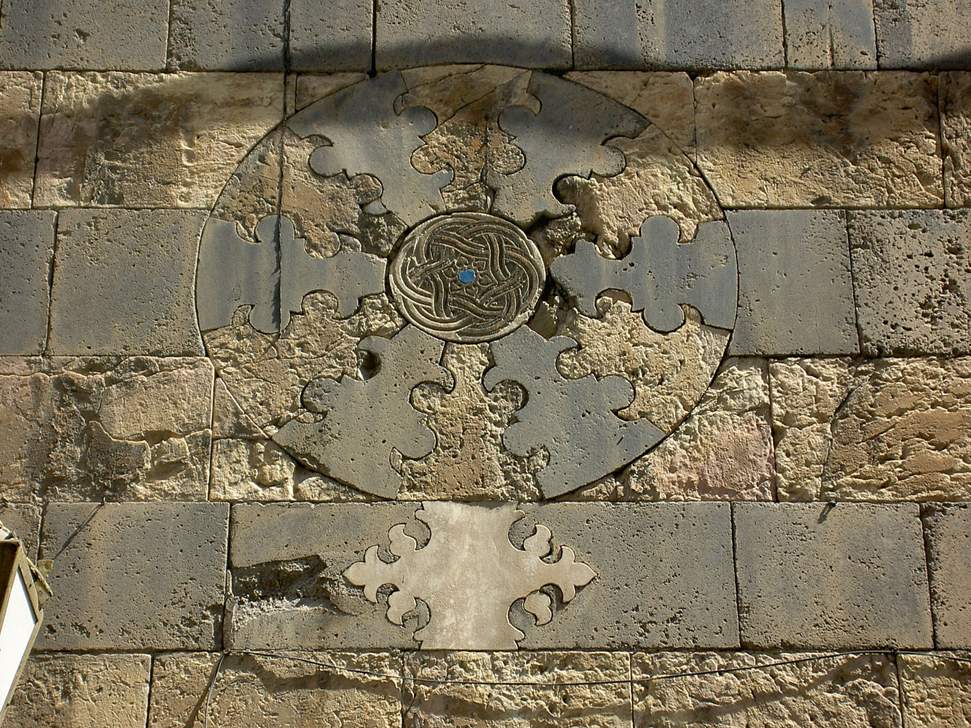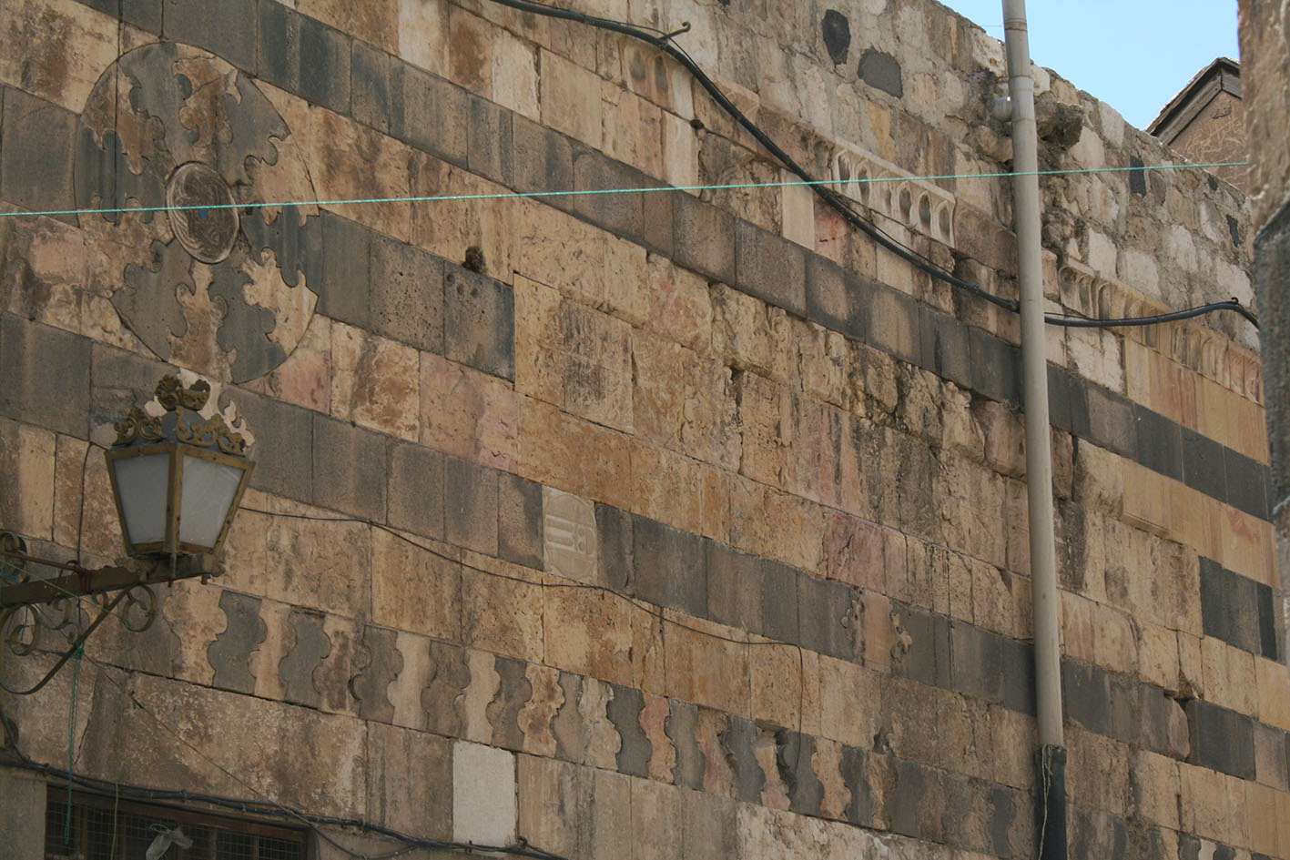Le bandeau inscrit de la façade ouest (ill.6, 7) porte un écritoire qui symbolise la fonction du commanditaire officiant comme porte encrier du sultan (dawadâr)[1], certainement pendant le second règne d’al-Nâsir Faraj (r.5 jumada II 808/28.XI.1405 - 25 muharram 815/7.V.1412) ou celui d’al-Mu’ayyad Shaykh (r.1 sha’ban 815/6.XI.1412 - 9 muharram 824/14.I.1421).