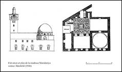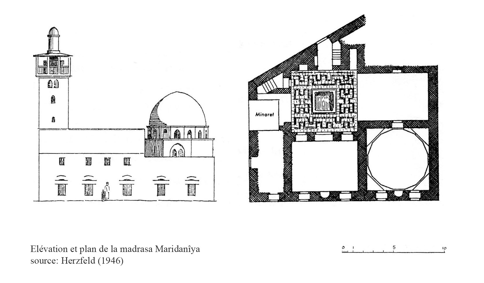 Le mausolée se dresse à l’angle sud-est d’une propriété quelque peu irrégulière ; en face de la salle de prière, située dans l’aile sud, on trouve le portail d’accès qui donne sur la cour via un corridor. La disposition des pièces du côté ouest a été modifiée par l’ajout postérieur d’un minaret quadrangulaire (ill.1, 2).