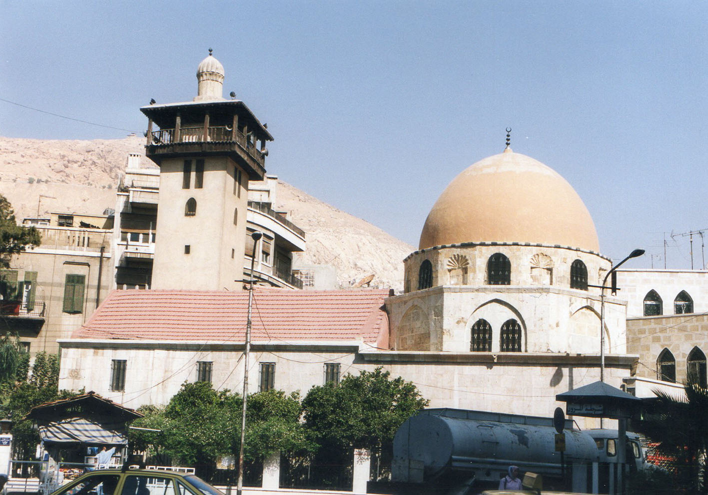 ‘Azizat al-Dîn Ukhshaw Khâtûn, fille d’un prince Artuqide de Mardin, était mariée au sultan Ayyûbide de Damas al-Mu’azzam ‘Isa (r.615/1218-624/1227). Selon les sources, en 610/1214, elle fit construire la madrasa hanafite à Jisr al-Abyad au pied du Qasyûn ; une fondation y est associée en 624/1227. La fondatrice, qui quitte Damas après la mort de son mari, le sultan, n’a pas été inhumée dans son mausolée.