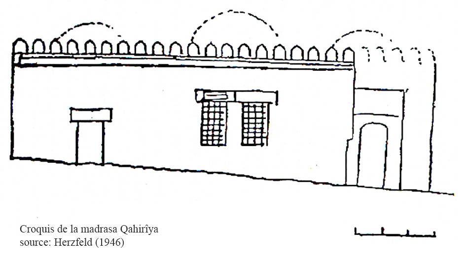 Dans l’une des ruelles menant à la rue principale d’al-Salihîye, al-Qâhir Ishâq ibn al-‘Adîl Abî Bakr a fait don d’une madrasa (probablement shafi’ite).