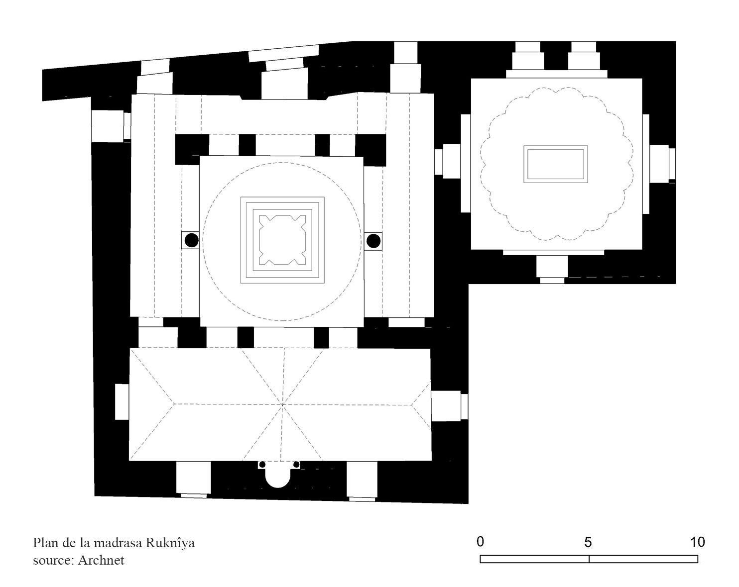 L’émir Rukn al-Dîn Mankuwirish al-Falakî (temporairement commandant de la citadelle à Bosra, m.631/1233) a construit sa madrasa funéraire hanafite dans la partie orientale d’al-Salihîye (aujurd’hui quartier Rukn al-Dîn).