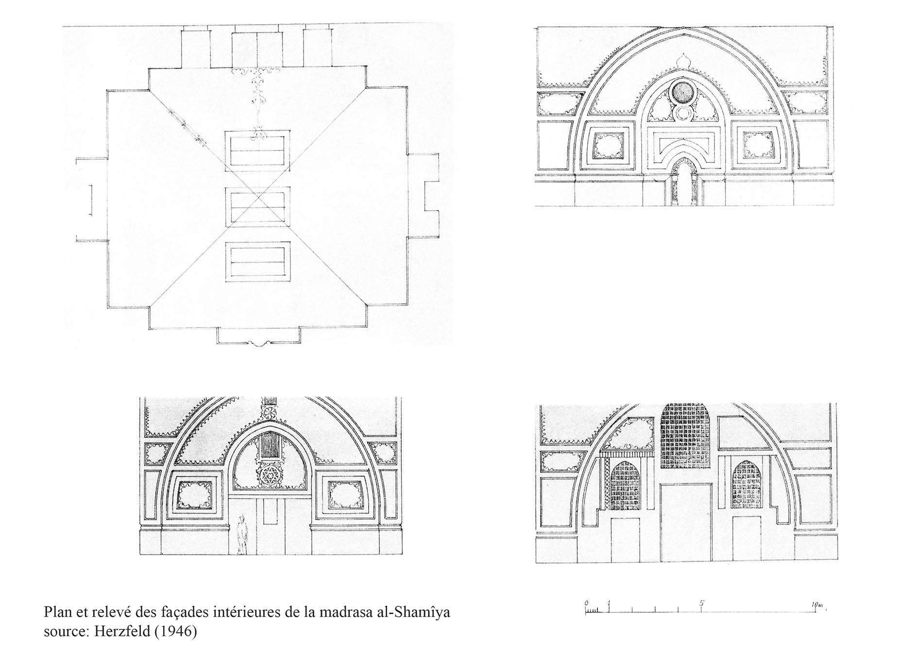 La salle intérieur est couverte d’une voûte croisée ; des stucs, des moulures et des médaillons ornent les surfaces voûtées en plâtre (ill.1). La désignation du tombeau comme ‘’lieu d’enseignement’’ par Nu’aimî semble problématique.