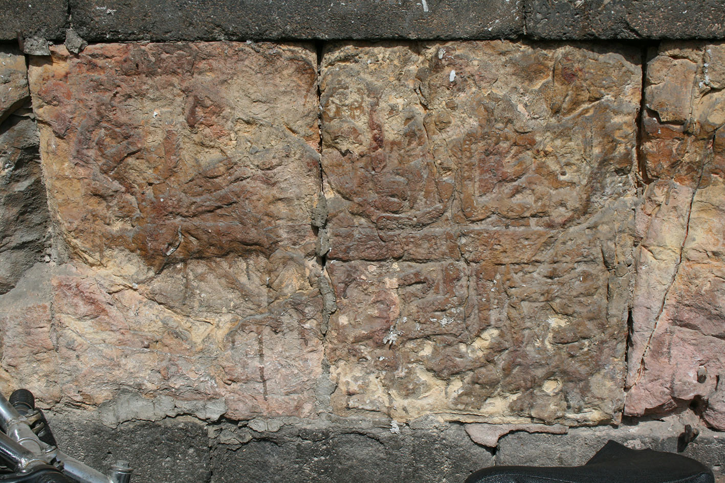 2e quart du 9e/15e siècle. Décret 3 lignes entre les deux fenêtres de la façade est.[3]