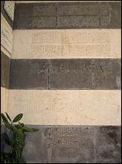 n.d. Inscriptions sur le côté gauche du portail dans 3 cadres séparés 3+2+1 lignes (ill.7).