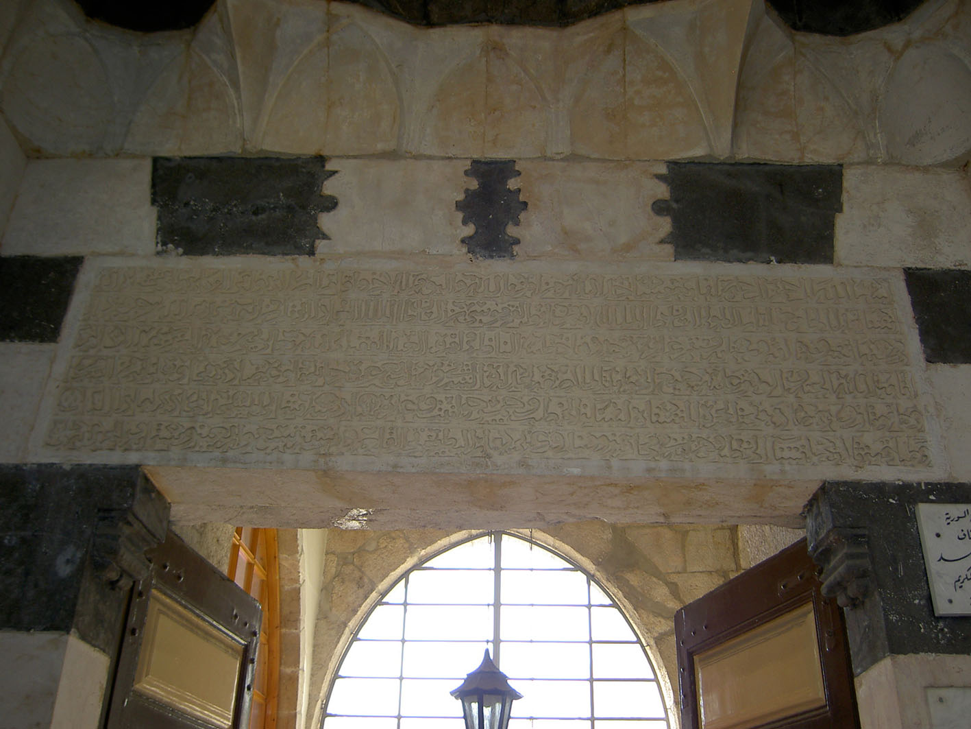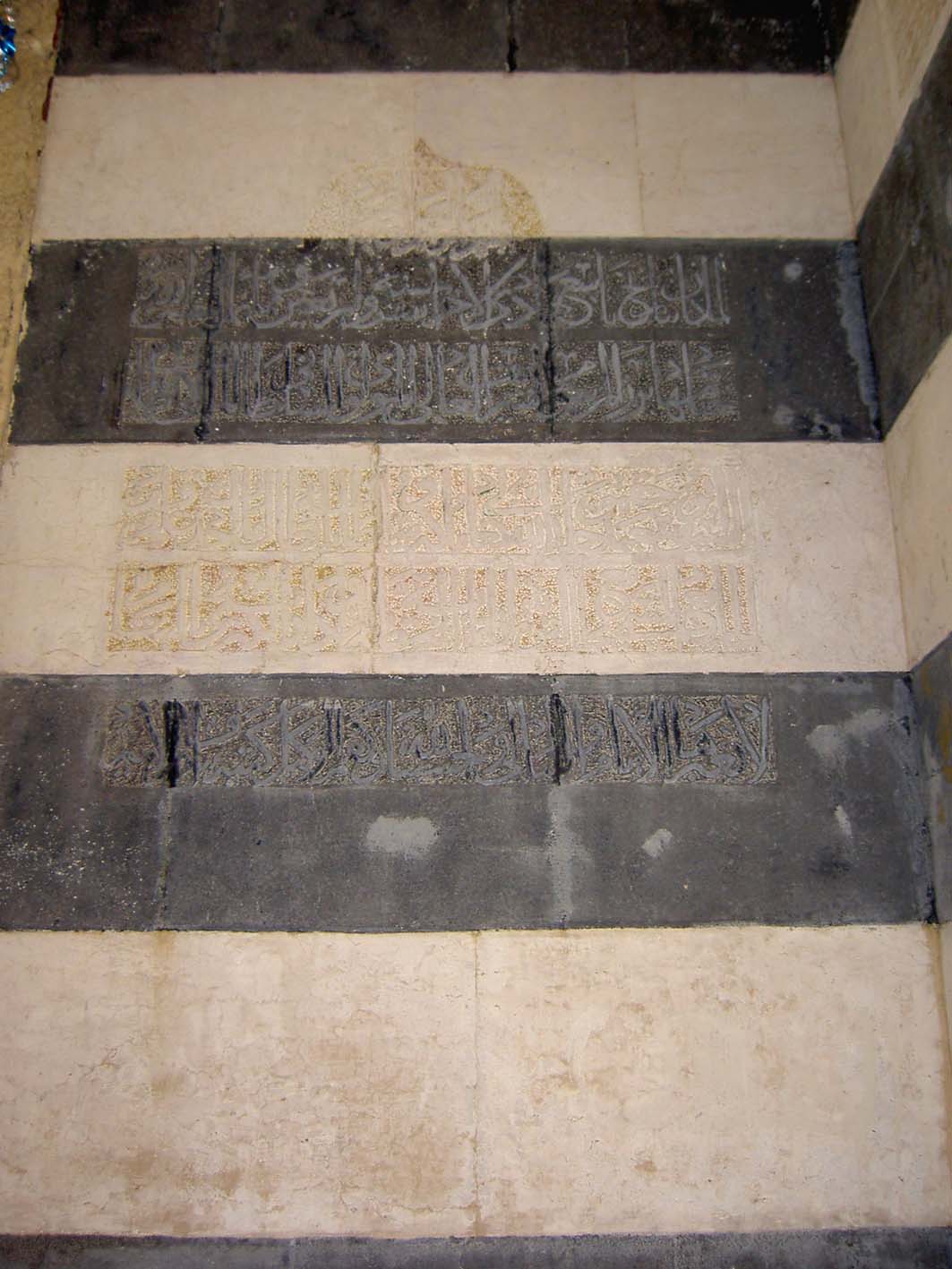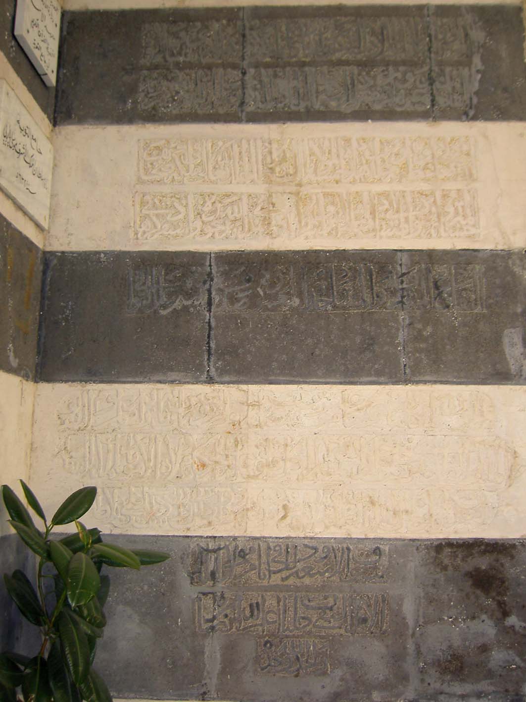 L’émir Fakhr al-Dîn Yusuf ibn Hammudîya a chargé le prédicateur de la mosquée al-Tawba, Badr al-Dîn Yahya, d’effectuer des travaux de restauration. Le mur de la qibla et le mihrâb ont été renouvelés, un décor doré a été appliqué et les piliers des arcades de la cour ont été blanchis à la chaux. Selon ibn Shaddad, cela a été fait sous le gouvernement du sultan as-Sâlih Ayyûb (r. 636/1239-637/1239 et 643/1245-647/1249). L’inscription sur le linteau du portail peut être associée à cette restauration (ill.5), qui fait pourtant référence à l’ancienne fondation de la mosquée d’al-Ashrâf Mûsâ, datée 649/1251 (ill.5).