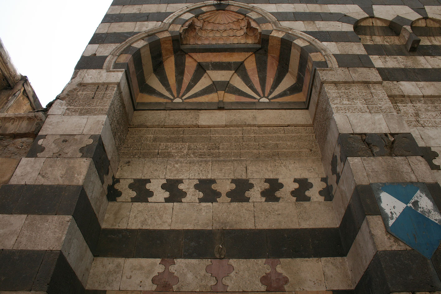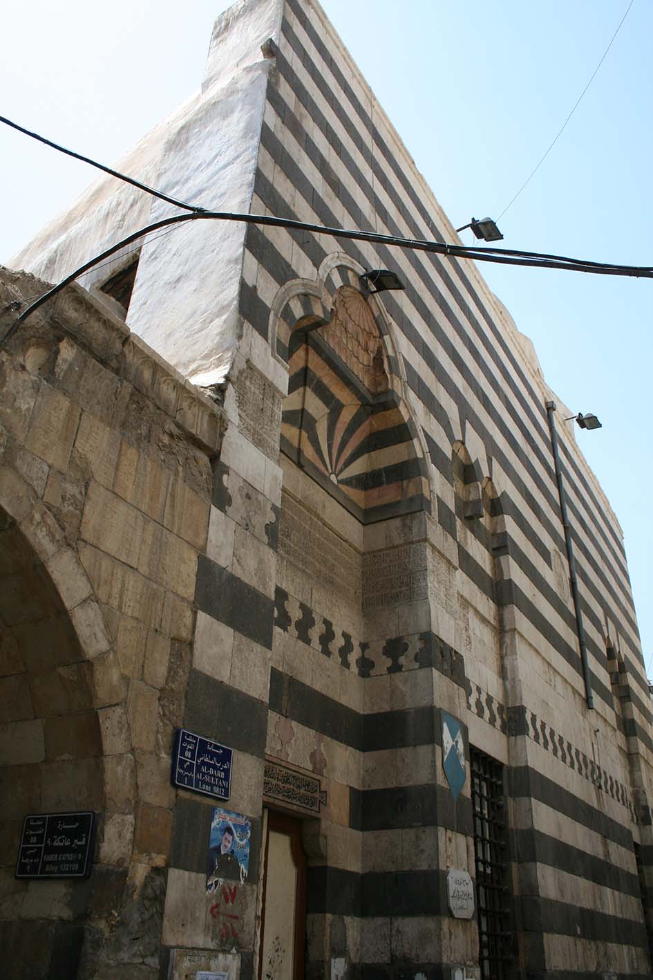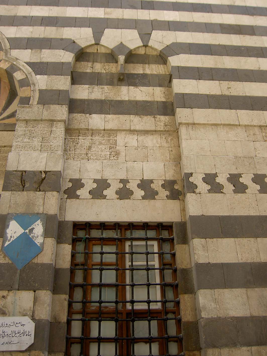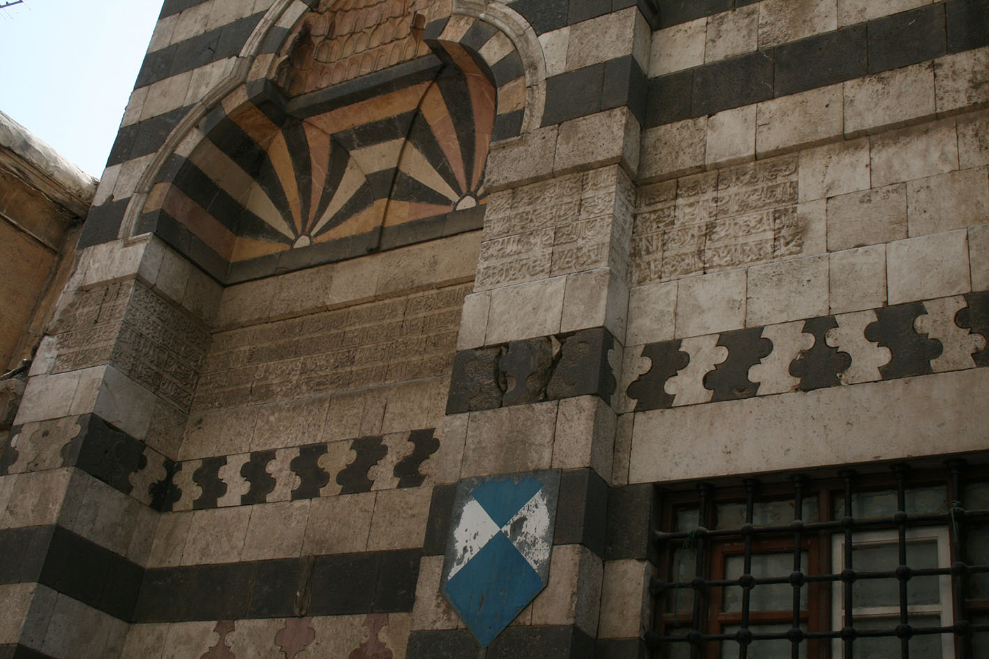 Une longue inscription sur le mur et l’iwan à l’intérieur décrit et détaille avec précision une très importante dotation pour la mosquée. Une seconde inscription de fondation parcourt la façade (ill.4-6), elle décrit aussi, précisement, une importante dotation, elle inscription se poursuit sur le côté est de l’édifice et mentionne le bain de l’émir, le hammam Tawrizî, construit en 826/1423 juste à côté de la mosquée. Ces deux inscriptions mentionnent des biens se trouvant autour de Safed, elles nous apprennent ainsi que Ghars al-Dîn a été en poste dans cette région avant de venir à Damas.