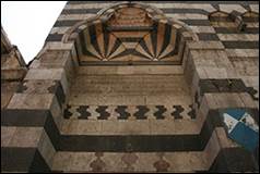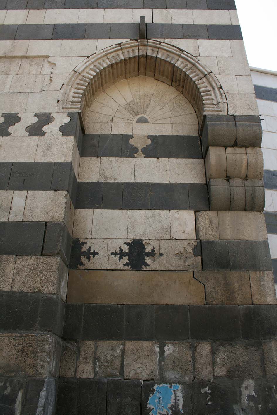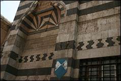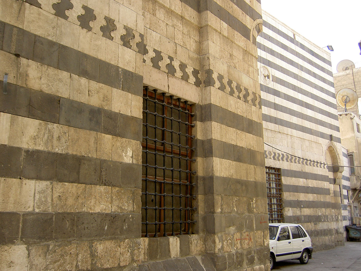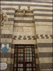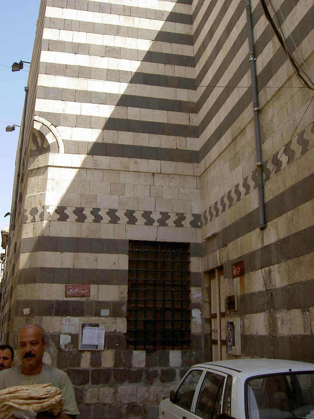 Une longue inscription sur le mur et l’iwan à l’intérieur décrit et détaille avec précision une très importante dotation pour la mosquée. Une seconde inscription de fondation parcourt la façade (ill.4-6), elle décrit aussi, précisement, une importante dotation, elle inscription se poursuit sur le côté est de l’édifice et mentionne le bain de l’émir, le hammam Tawrizî, construit en 826/1423 juste à côté de la mosquée. Ces deux inscriptions mentionnent des biens se trouvant autour de Safed, elles nous apprennent ainsi que Ghars al-Dîn a été en poste dans cette région avant de venir à Damas.