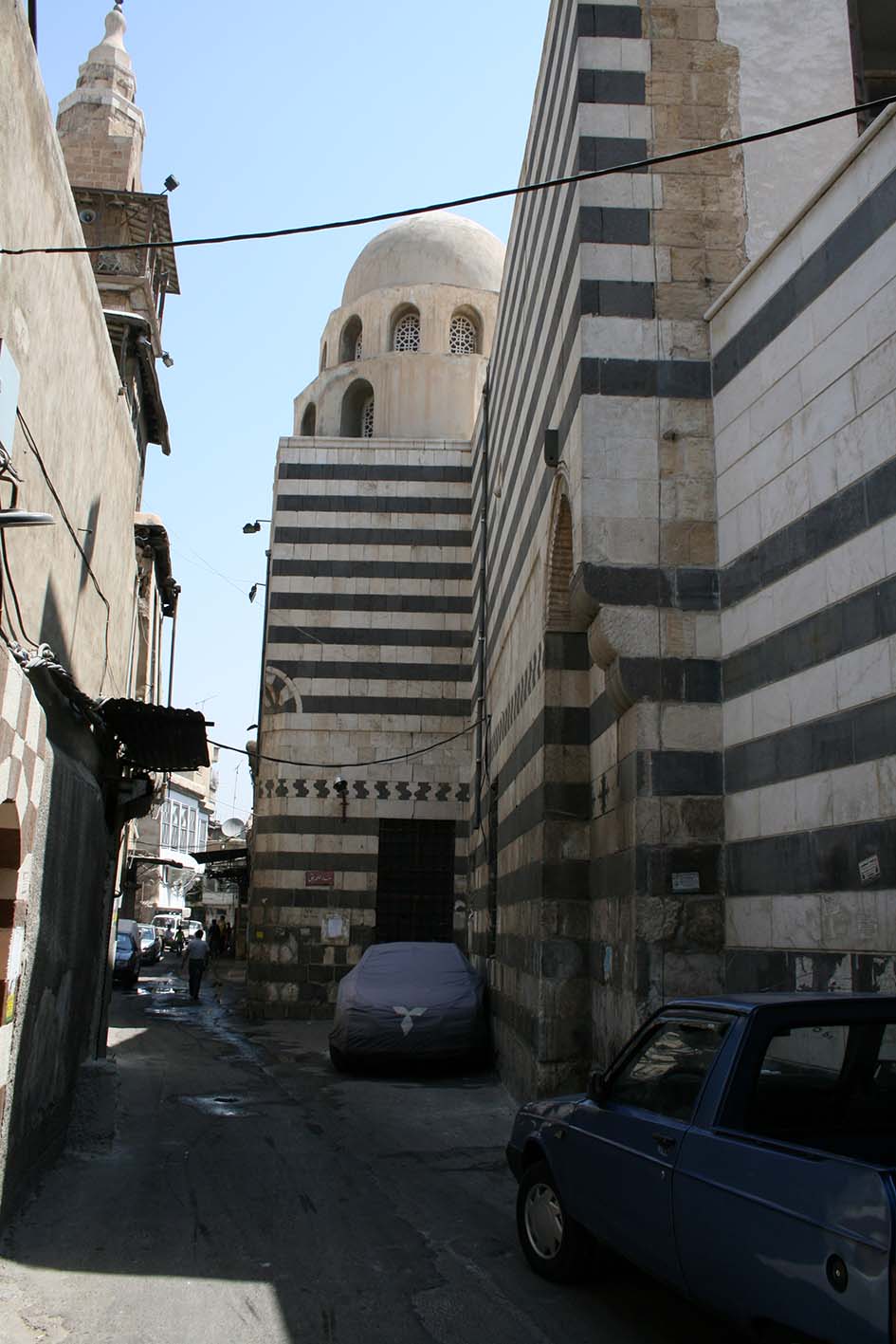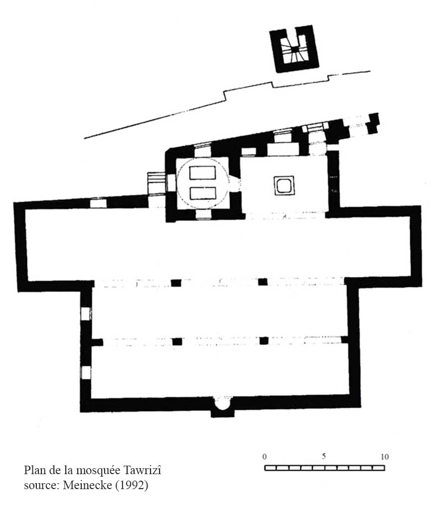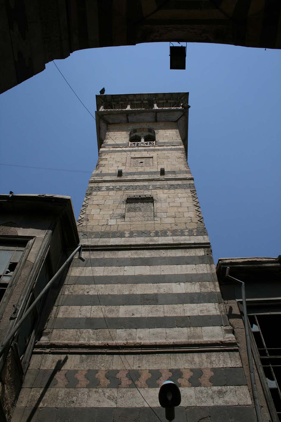 Un minaret est élevé de l’autre côté de la rue (ill.1, 13-17), il est daté par son inscription de 832/1428 (ill.18), soit après la mort de l’émir. Il présente des similitudes dans sa forme et son décor avec le minaret Qolâ’i construit en 835/1431 et le minaret Hisham daté 830/1427. Le portail trilobé de la mosquée (ill.4-7) est assez similaire avec les portails de la madrasa al-Burtasîya construite à Tripoli vers 725/1325 et du khanqâh Sâlah al-Dîn à Jérusalem.