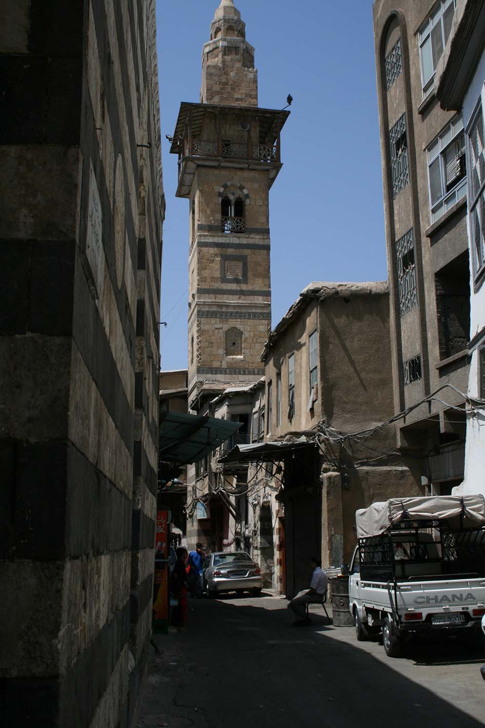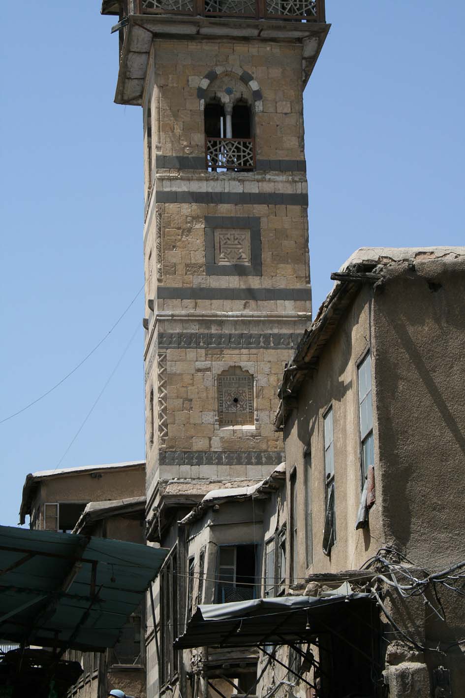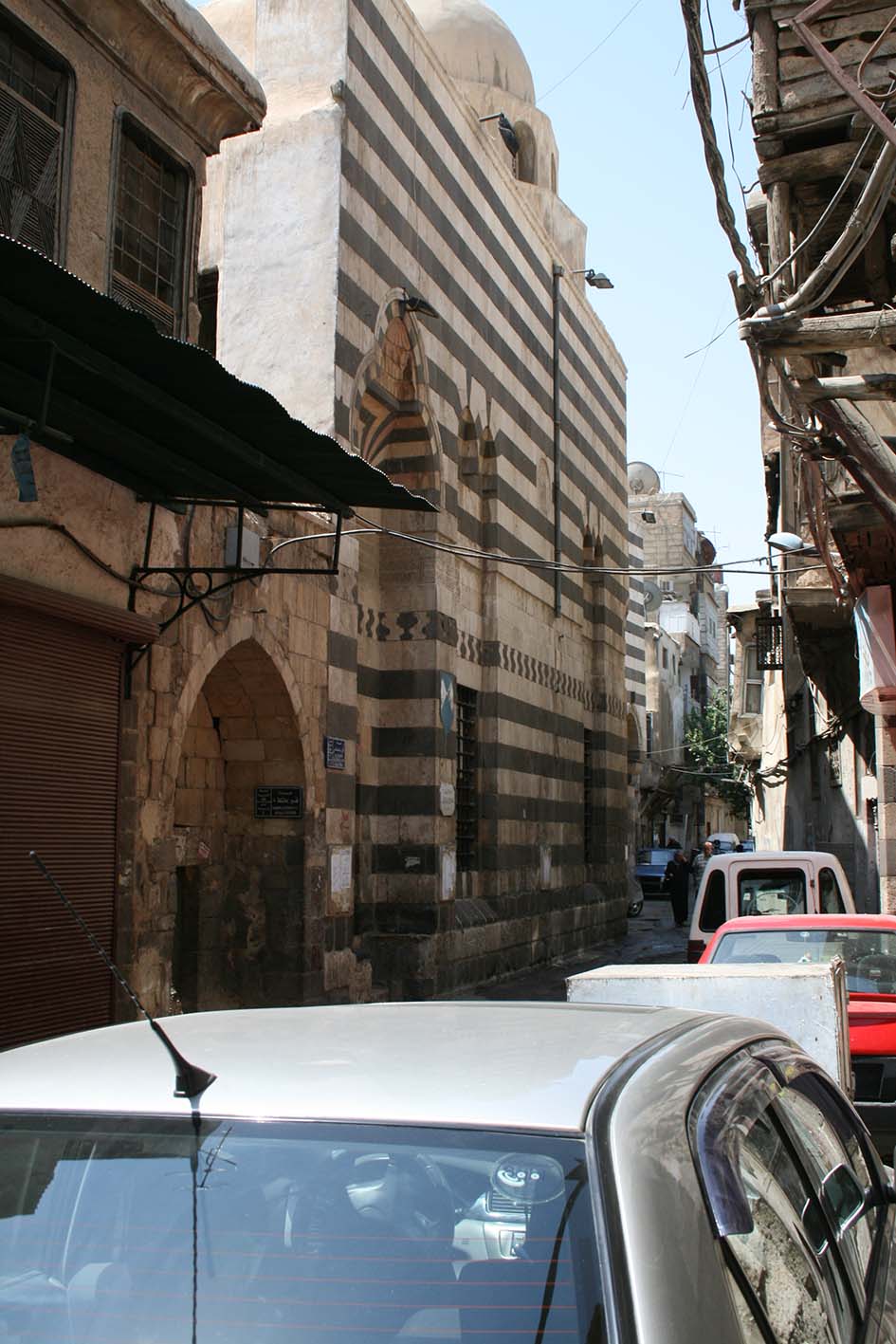 Un minaret est élevé de l’autre côté de la rue (ill.1, 13-17), il est daté par son inscription de 832/1428 (ill.18), soit après la mort de l’émir. Il présente des similitudes dans sa forme et son décor avec le minaret Qolâ’i construit en 835/1431 et le minaret Hisham daté 830/1427. Le portail trilobé de la mosquée (ill.4-7) est assez similaire avec les portails de la madrasa al-Burtasîya construite à Tripoli vers 725/1325 et du khanqâh Sâlah al-Dîn à Jérusalem.