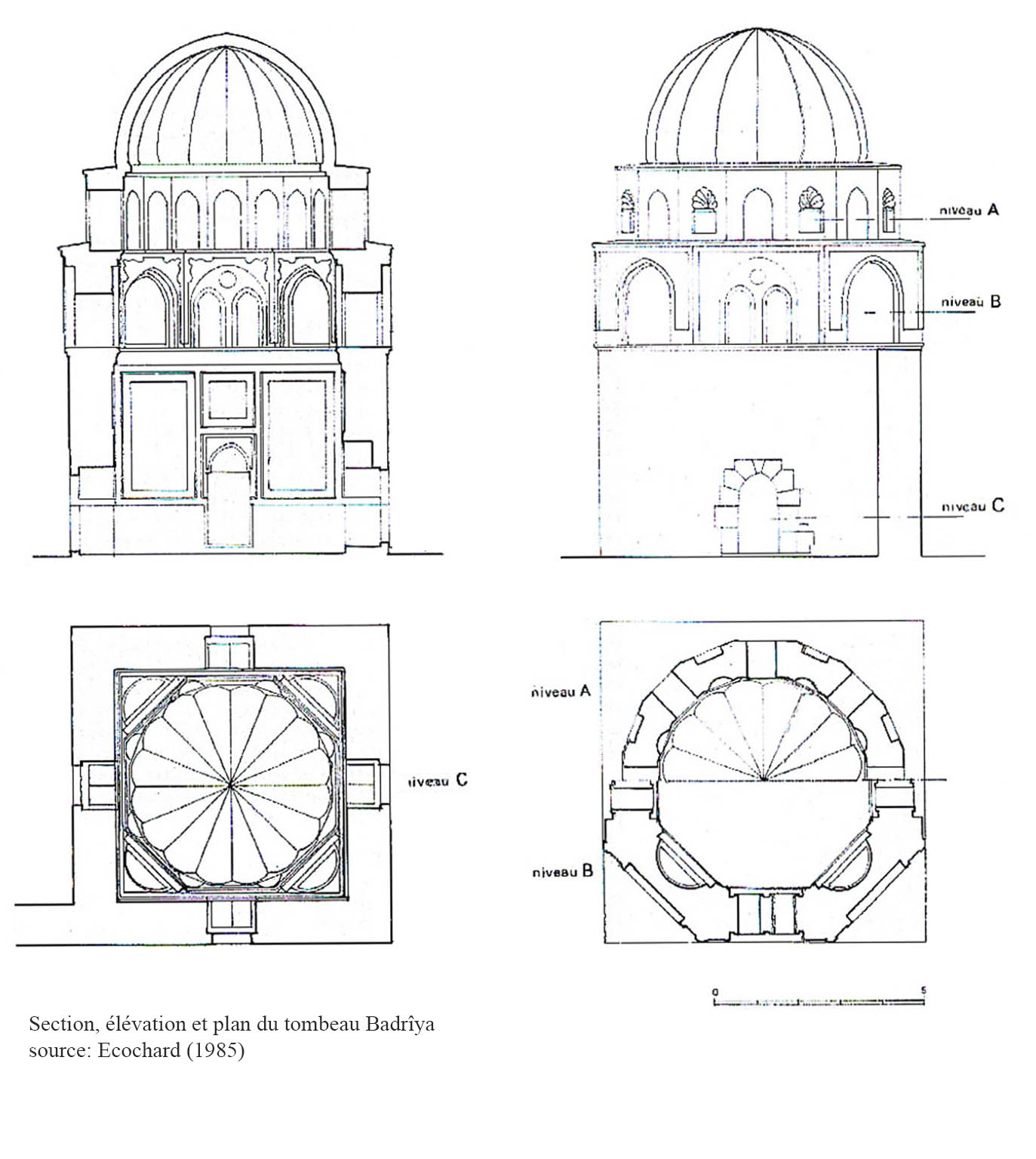 Le mausolée situé au pied du Qasiyûn, vers un pont sur le nahr Thawra, représente le type standard du turba damascain du début du 7e/13e siècle (ill.1, 2). Aujourd’hui isolé, il appartenait à l’origine au vaste complexe d’une madrasa hanafite. Cette madrasa hanafite peut avoir été équipée en 638/1240, porbablement sous le règne du sultan al-Sâlih Isma’îl (r.637/1239-643/1245).
