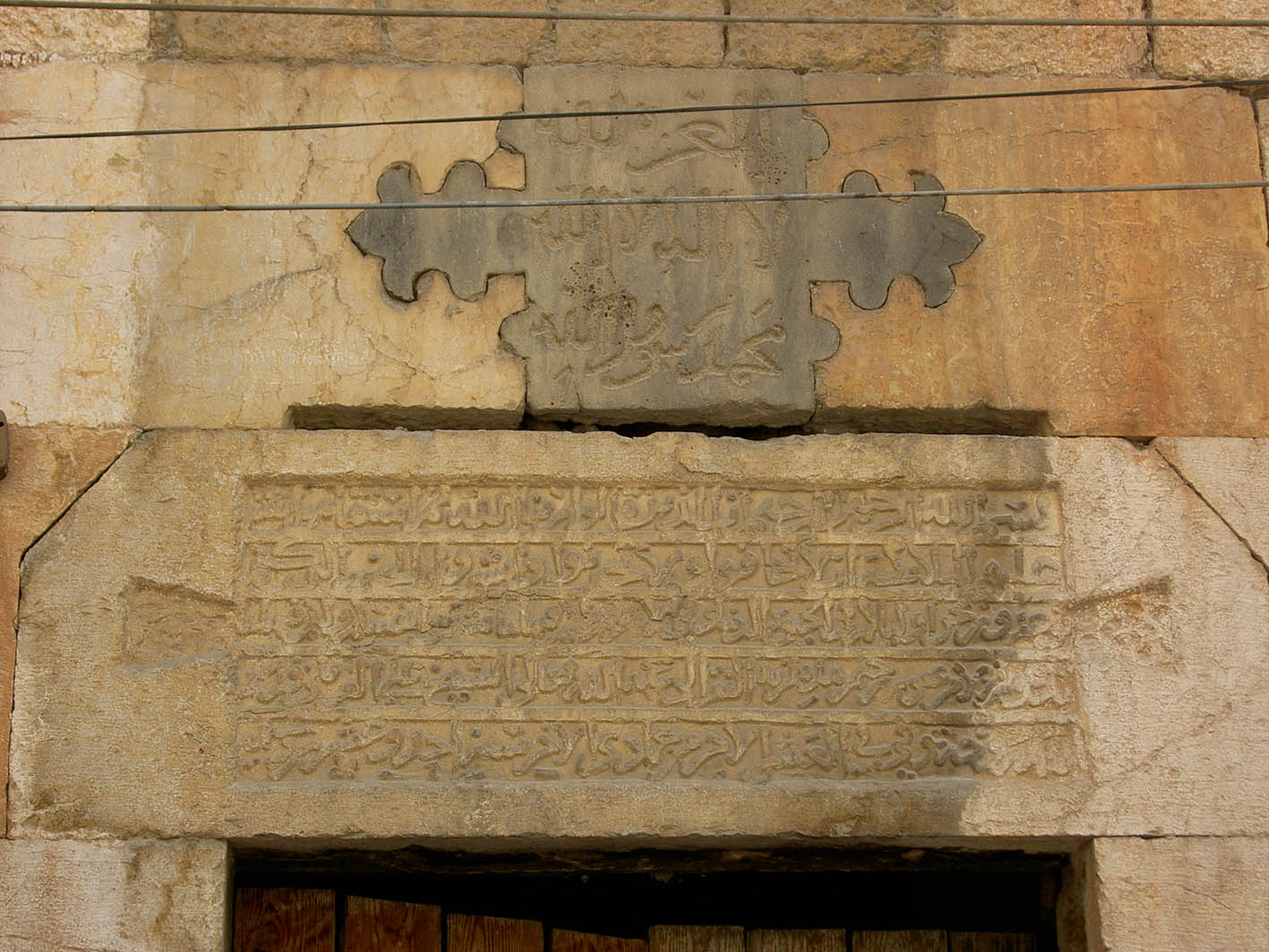 Après sa mort en 621/1224, son tombeau a été ajoutée à la zawîya (ill.2). Le mausolée suit le modèle habituel des tombeaux à Damas, il présente une clé de voûte originale imbriquée dans l’arc de décharge du portail (ill.5) au-dessus du linteau qui porte l’inscription funéraire datée 621/1224 (ill.6).