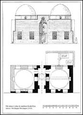 L’édifice est une installation double qui réunit un tombeau et un ribat, il est construit par le gouverneur Saif al-Dîn Tankiz (en fonction de 712/1312 à fin 741/juin 1340)[1] pour sa femme Sitîta bint Amir Kukbây al-Mansûrî, décédée peu avant le 3 rajab 730/22.IV.1330. D’après les souhaits de cette dernière, le complexe devait proposer un espace funéraire dans la salle est, un masjid et une école dans la salle ouest et un ribat dans une extension au nord (ill.1). Le tombeau s’insère dans un environnement urbain déjà bien bâti avec des madrasa Ayyûbides, notamment. Il est achevé en dhu’l-hijja 730/15.IX-14.X.1330.