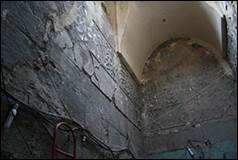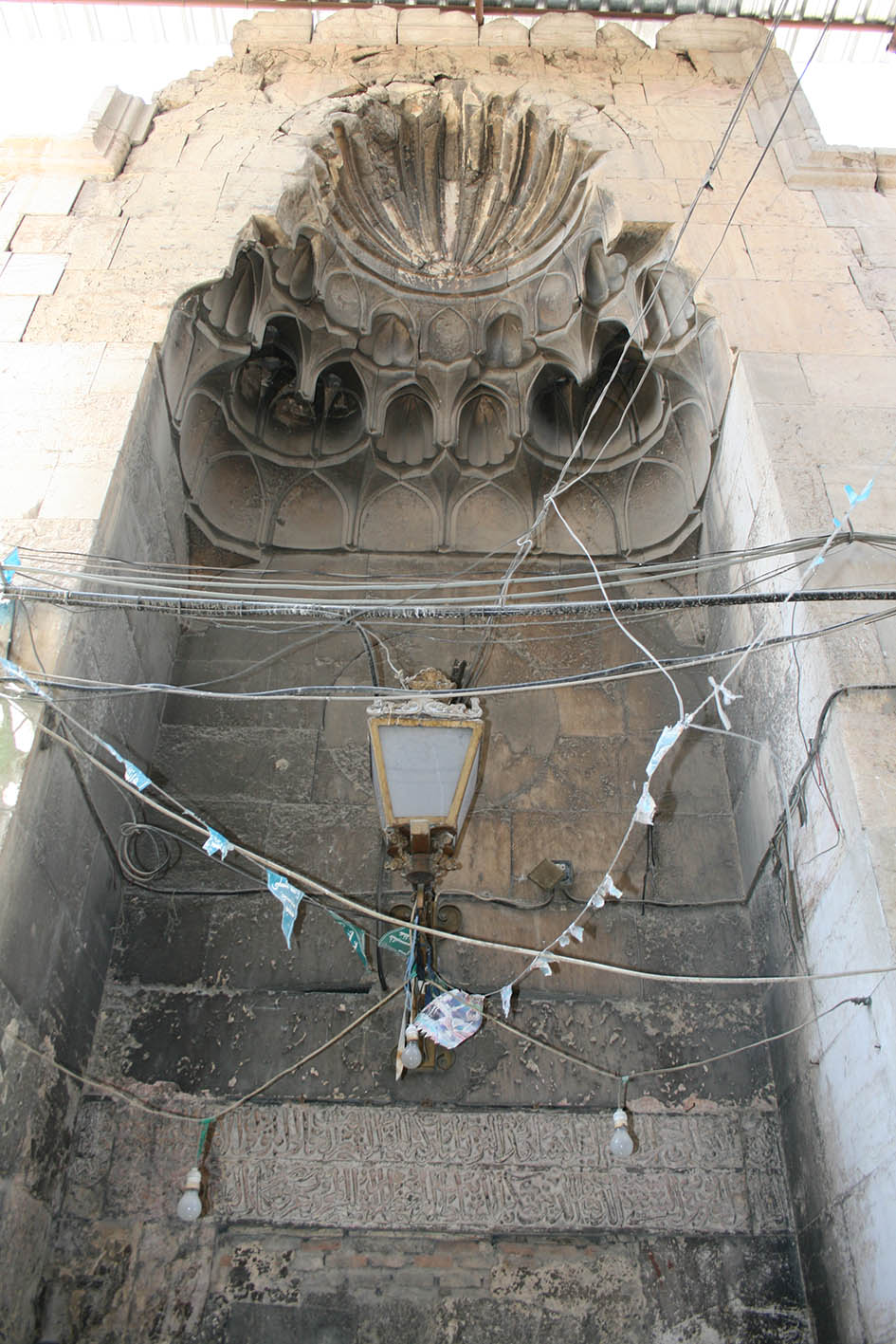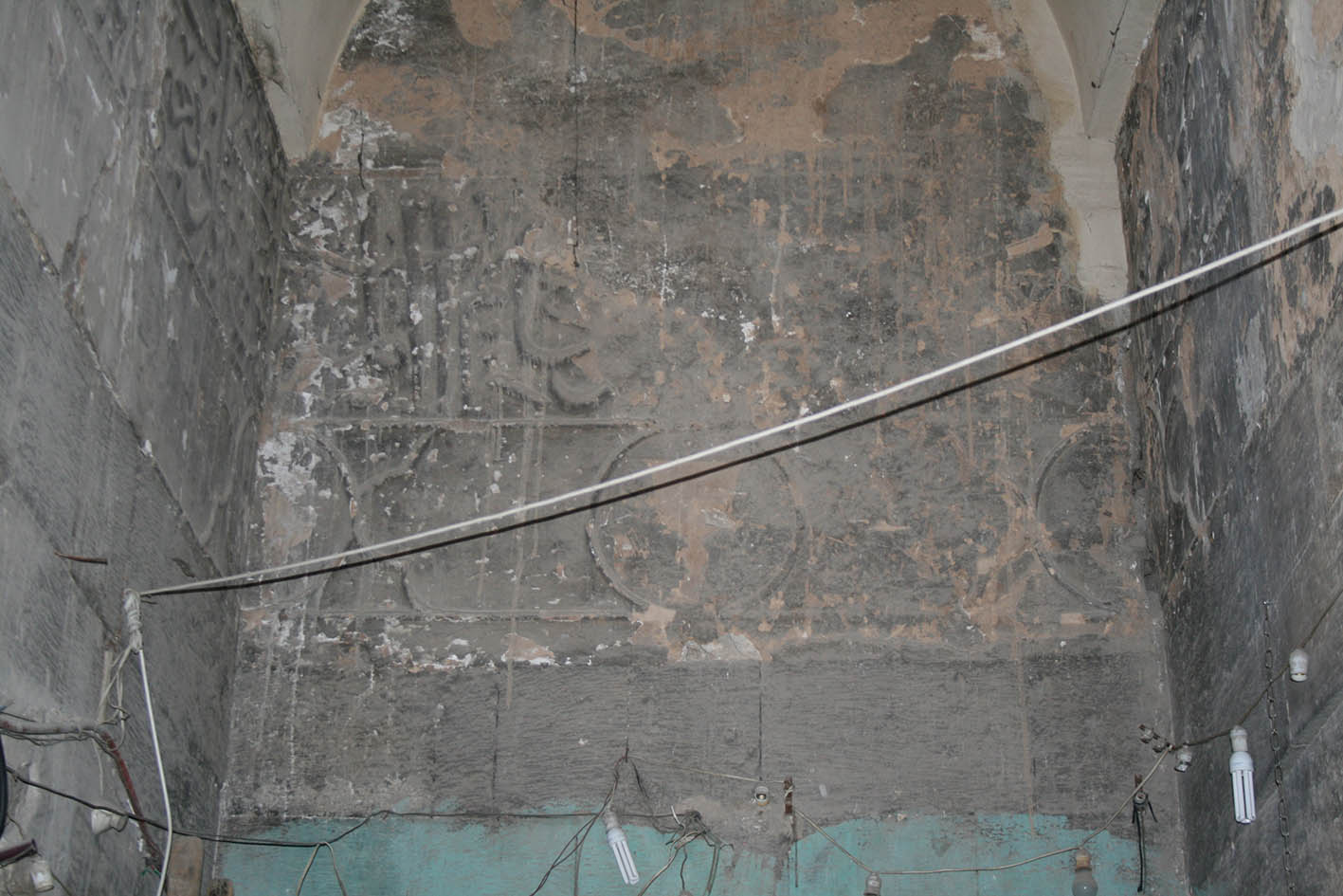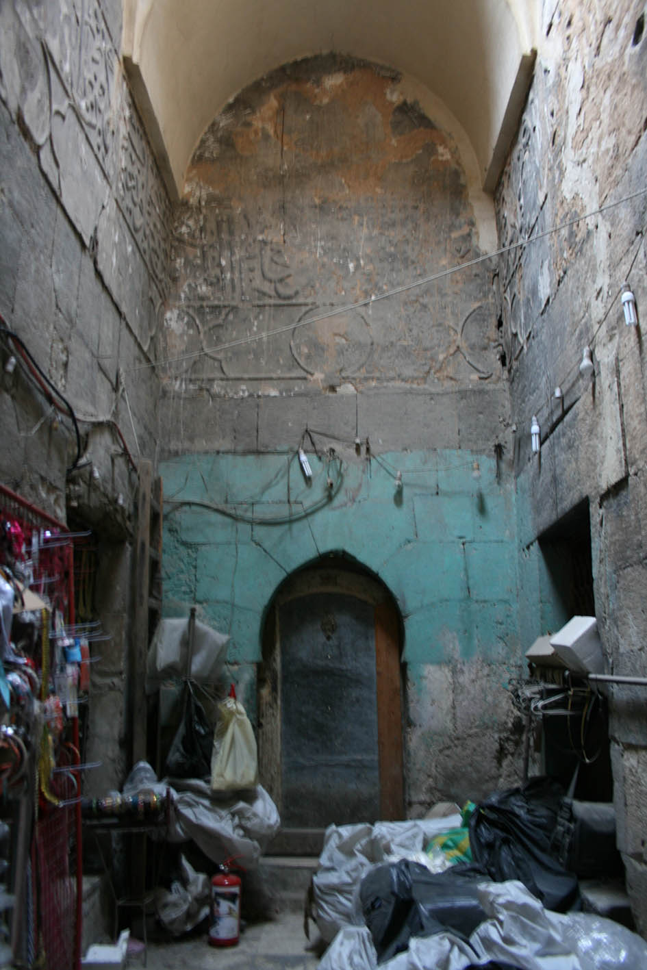 Aujourd’hui il reste la façade, le vestibule et une partie des deux salles. Le corridor présente un accès vers l’arrière qui devait desservir le ribat situé au nord des deux salles funéraires (ill.9). Un grand bandeau inscrit et des blasons de Tankiz (une coupe) sont gravés sur les quatre murs du corridor (ill.9-12). En tant que gouverneur de la ville, Tankîz est à l’origine de la mosquée/tombeau Tankîz (718/1318), de la madrasa Tankizîya (739/1338) et de réparations à la Grande Mosquée. En tant que vice-roi (na’îb al-sultana), il est à l’origine de nombreuses constructions à travers le territoire et notamment à Jérsalem, avec la madrasa Tankizîya (728/1328), le khân Tankîz (736/1336) et le sûq al-Qattanîn (736/1336).[2]