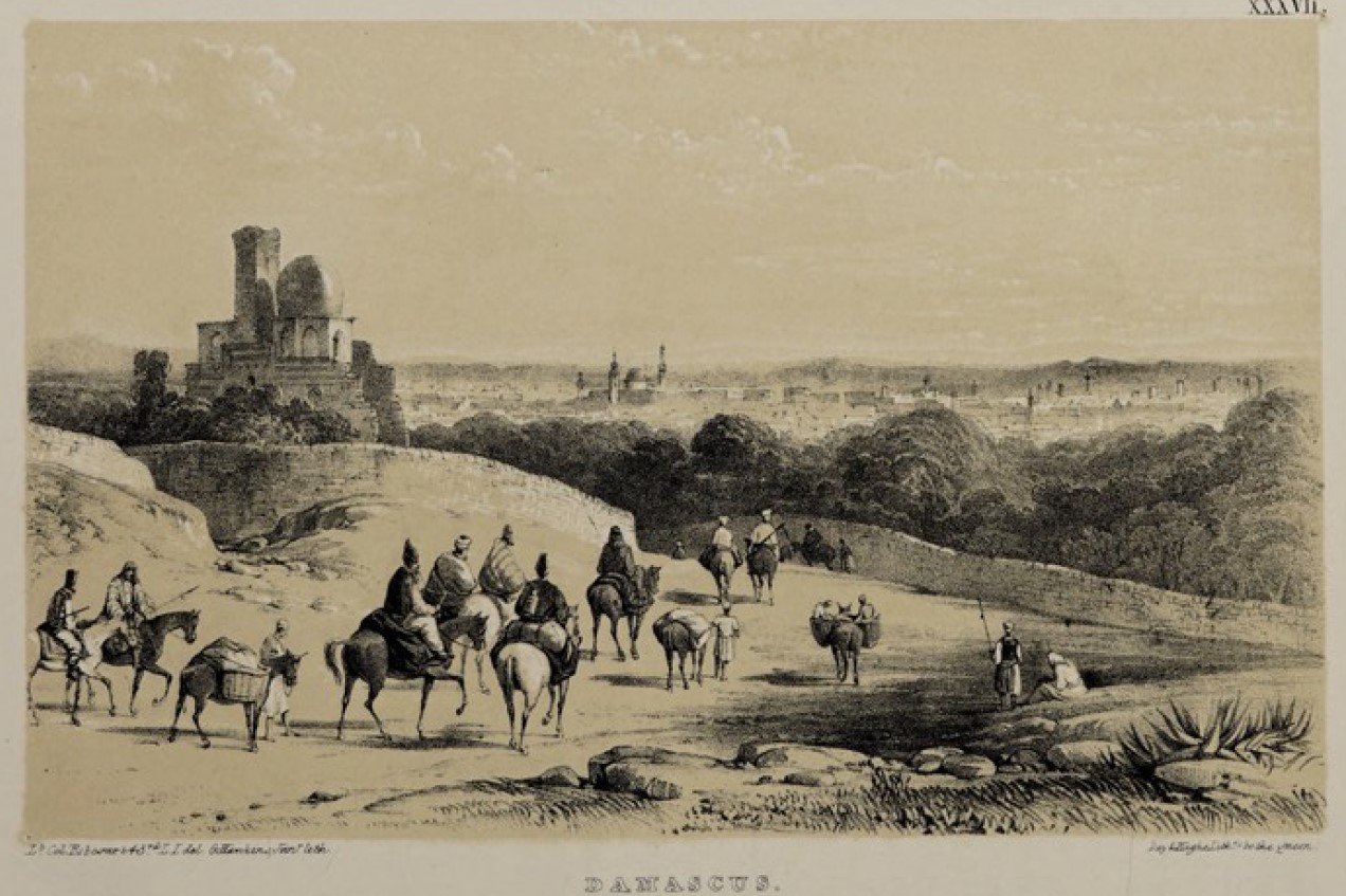 Le site apparaît souvent dans les récits de voyages du 19e siècle, il faut dire que le Mont Qasyûn où se trouve ce tombeau était la porte d’entrée de la ville, située en contrebas, pour les voyageurs en provenance de Beyrouth, via les Monts du Liban.[2] Certaines gravures ou photos d’époque montrent des restes de murs arrachés ou de bâtiments accolés au tombeau, il porte aussi un fût rectangulaire inséré entre les zones de transition de ses deux coupoles (voir plus bas). Une photographie de Lucien Roy datée de 1911 présente, aussi, l’édifice entouré de murs et de bâtiments.[3]