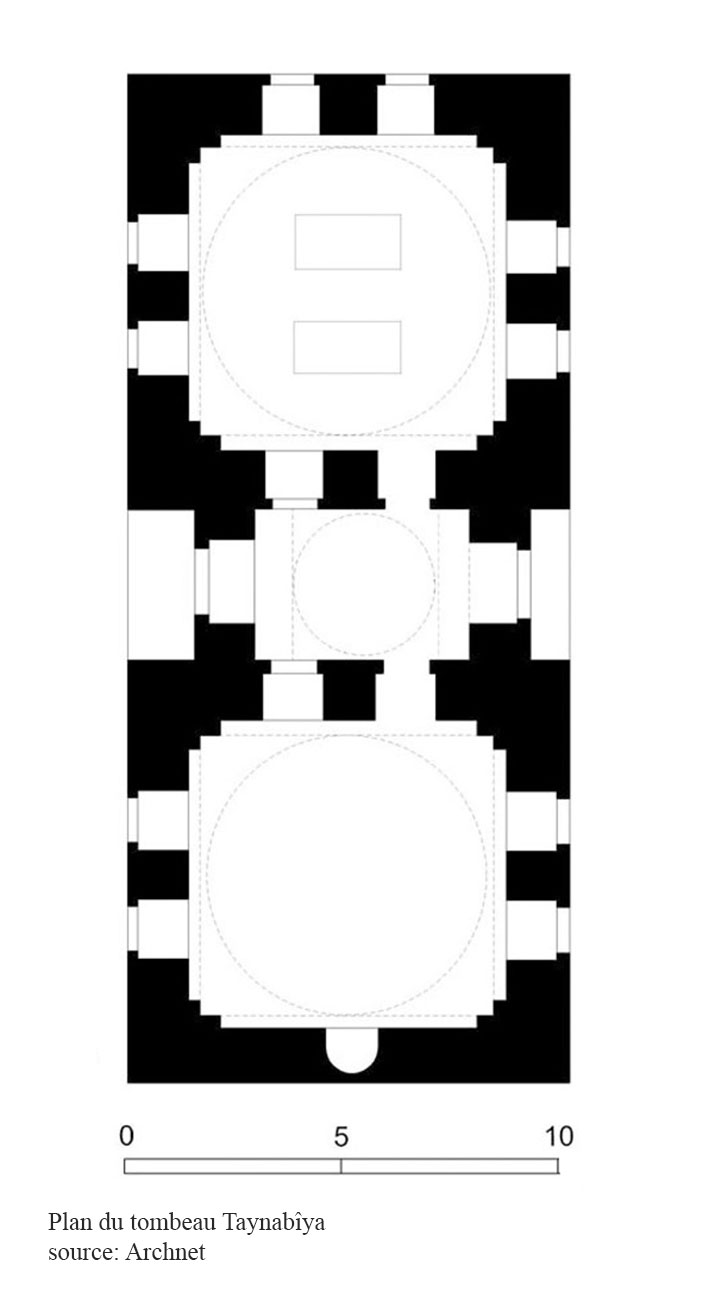Cet édifice reprend le modèle damascain du tombeau double tout comme le tombeau Kitbughâ (703/1303), le tombeau Kaukaba’îya (730/1330) et la madrasa al-Rashidîya (768/1367).