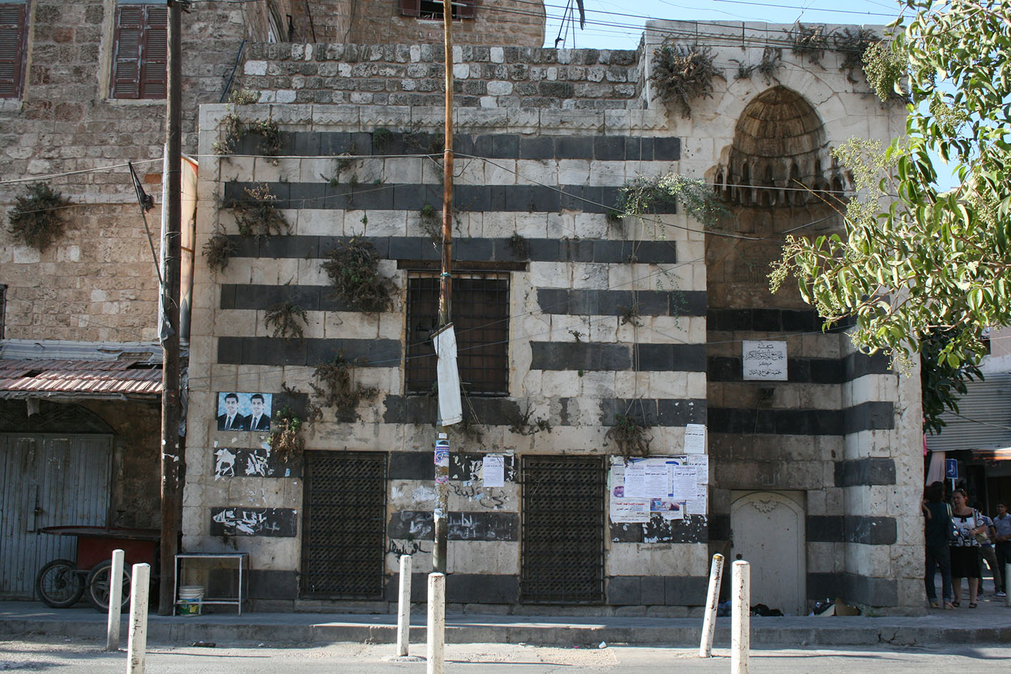 sur la rive gauche du nahr Abû ‘Alî, au nord face à la Grande Mosquée (plan