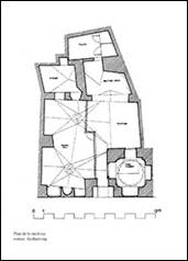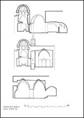 une salle de prière longeant tout le côté ouest, au sud-est un tombeau et des
