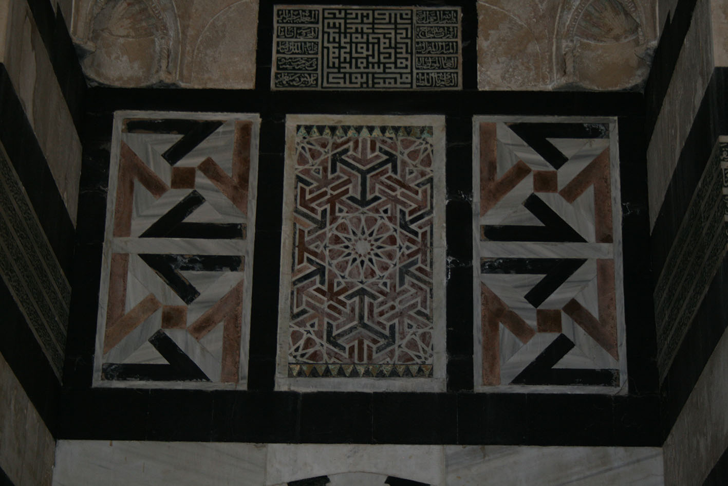 construction 5 lignes sur des carreaux au-dessus de la porte du sanctuaire