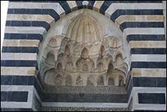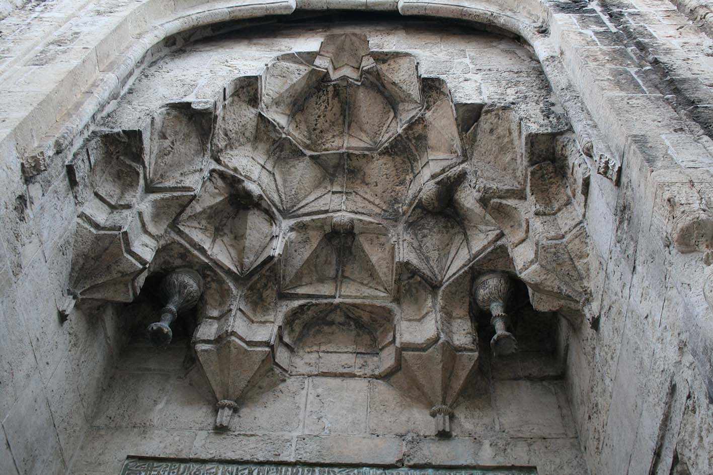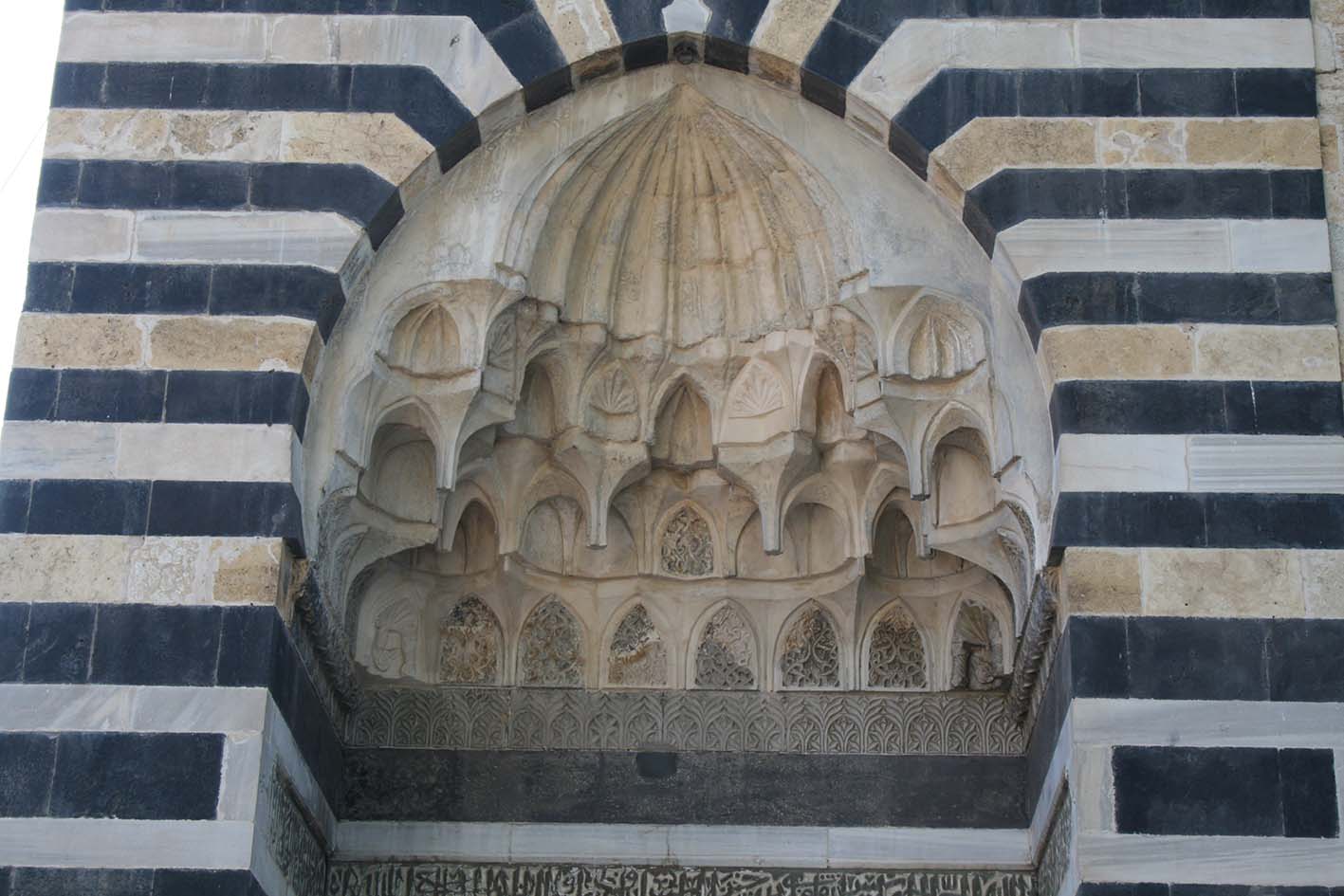 Le côté ouest, qui comprend un portail à muqarnas et une coupole à niches, reprend la forme et le décor des grands portails construits par les Seldjukîdes de Rûm (ill.7-12).