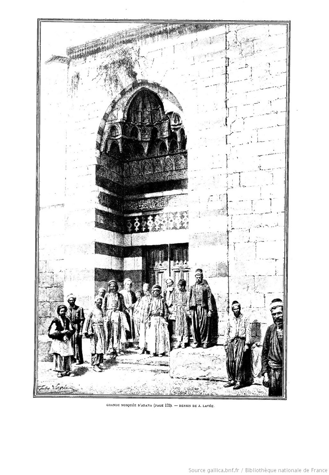 Le portail est de la Grande Mosquée d’Adana Source : Chantre (1898) |