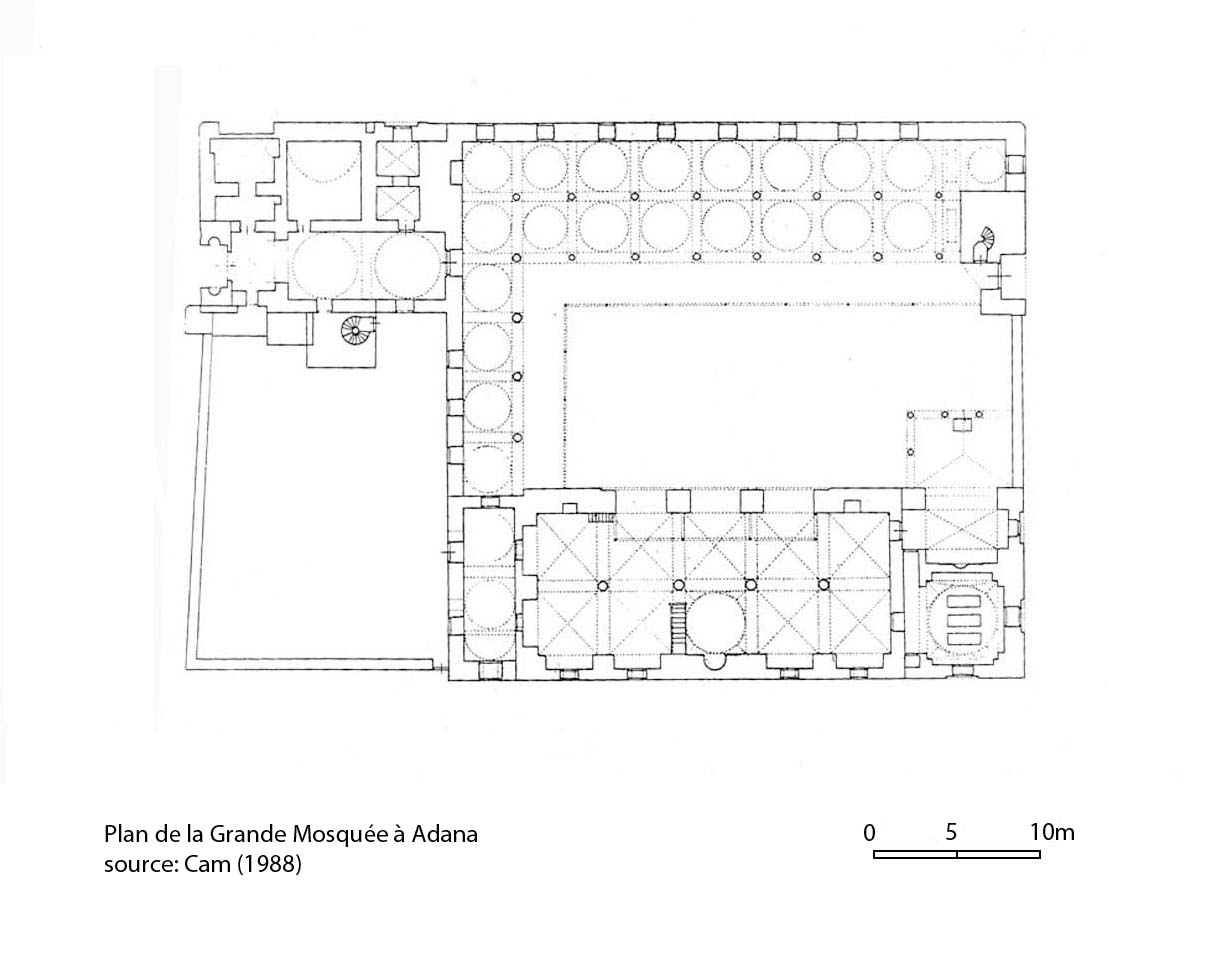 La construction de la mosquée débute avec le Ramadhanoglu[1] Khalîl (r.1495-1510) en 913/1507 et s’achève avec son fils Piri Mehmet Pacha (r.1520-1568) en 948/1541. Ils sont aussi à l’origine des mosquées voisines de Yag çami et Akça mescit. C’est un complexe regroupant une salle de prière (mescîd), un tombeau au sud-est (türbe), une madrasa à l’est et divers bâtiments construits au fur et à mesure (ill.1).