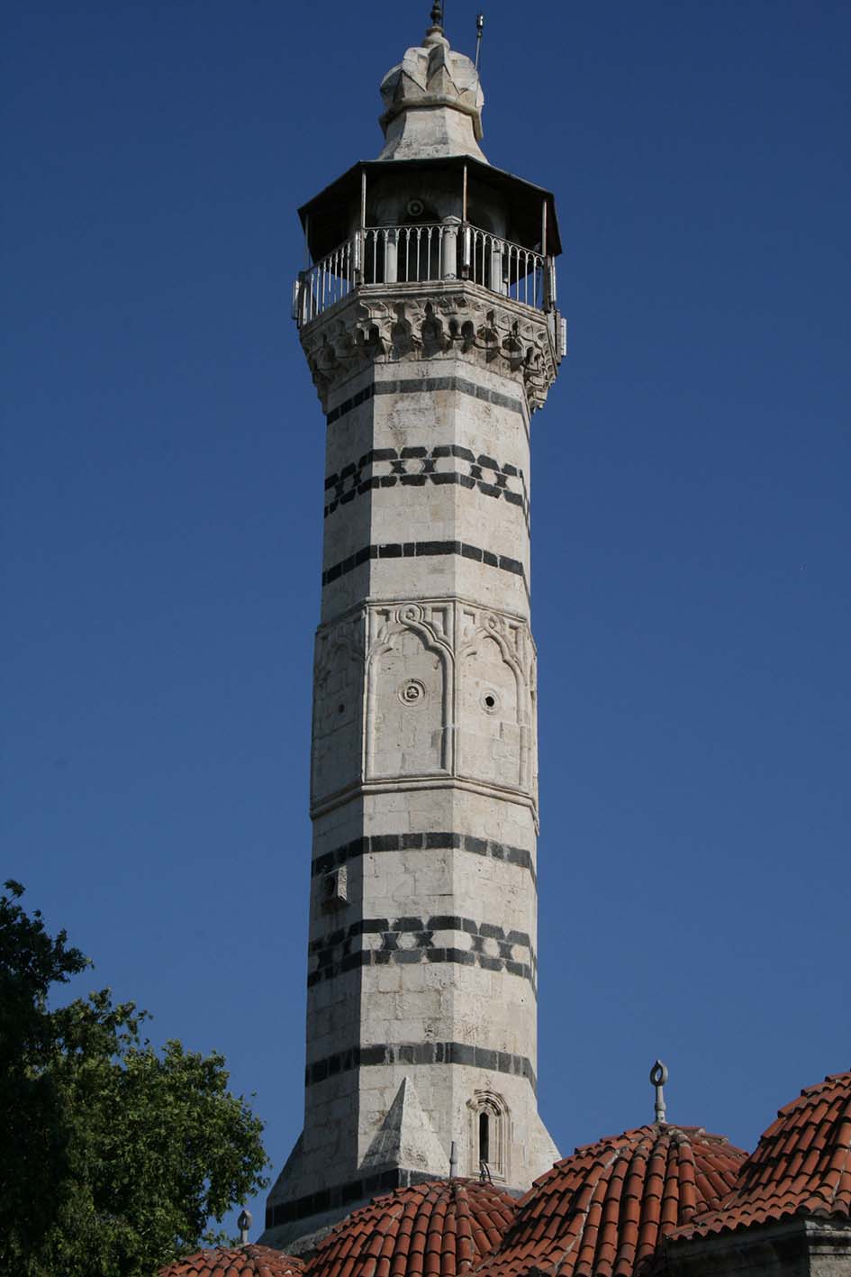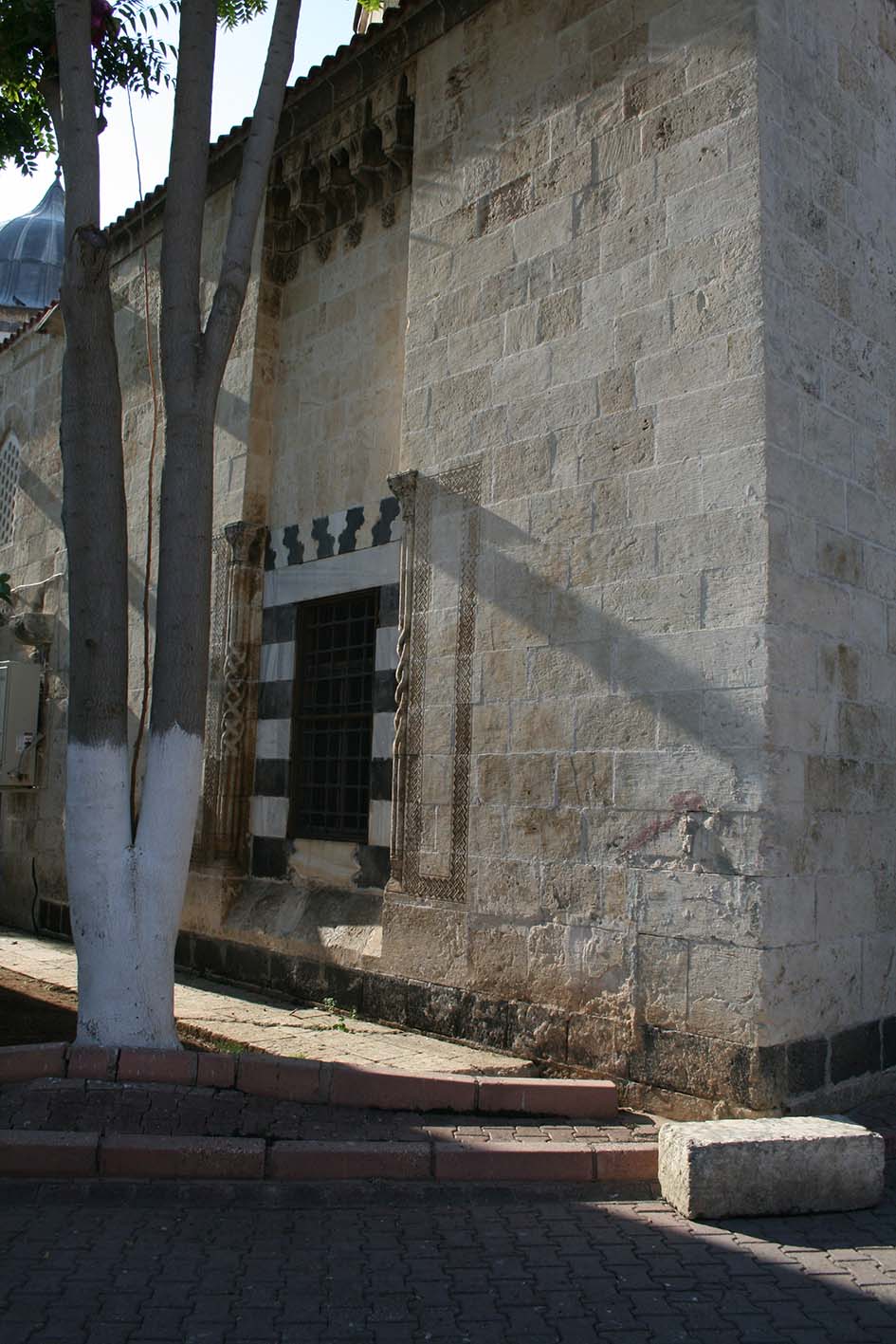 Le portail est, les ouvertures ainsi que le minaret sont entièrement d’inspiration Mamluk, ces éléments reprennent le programme ornemental des édifices mamluk d’Alep, comme la mosquée al-Tawashî (774/1372) ou le tombeau de Khairbak (920/1514) par exemple.[3] Le travail de cette partie est peut-être l’œuvre d’un atelier itinérant en provenance d’Alep.[4]