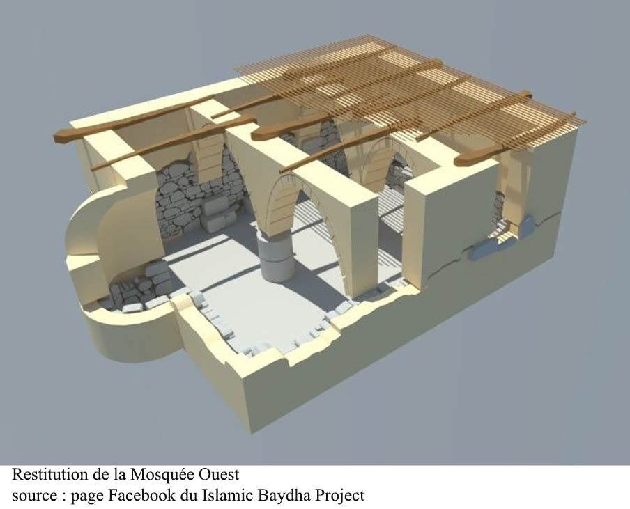 Une seconde mosquée située au nord-ouest de Bayda A a été excavée, cette Mosquée Ouest ou Mosquée 2 est plus petite (7x5m) ; la salle de prière comprend deux arches orientées est-ouest, elle est élevée à flanc de rocher (ill.15-18, 25).