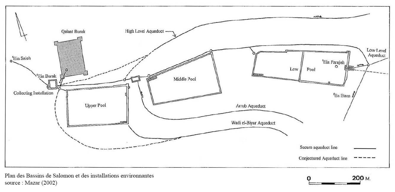 Les bassins de Salomon regroupent trois bassins rectangulaires approvisionnant Jérusalem en eau (ill.19), ils sont creusés à différents niveaux dans le wadî al-Hoch, un affluent du wadî al-Urtas.