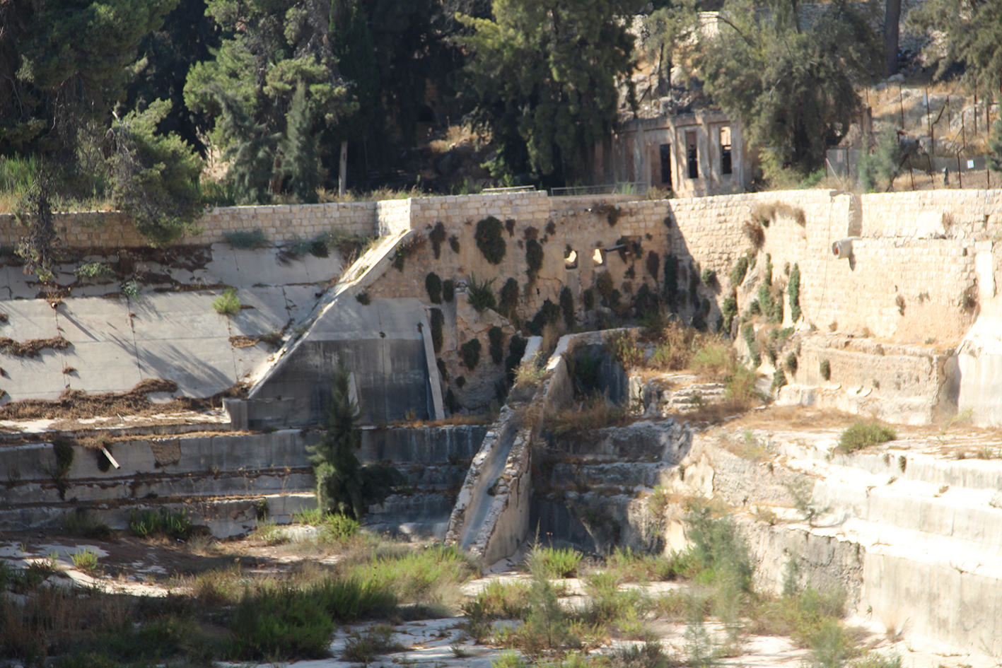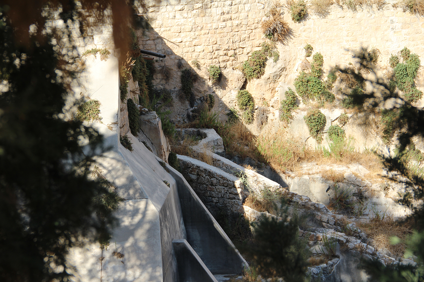l’aqueduc du Wadî al-Biyar qui apportent l’eau depuis les sources et les bassins plus élevés au sud jusqu’au bassin Supérieur.