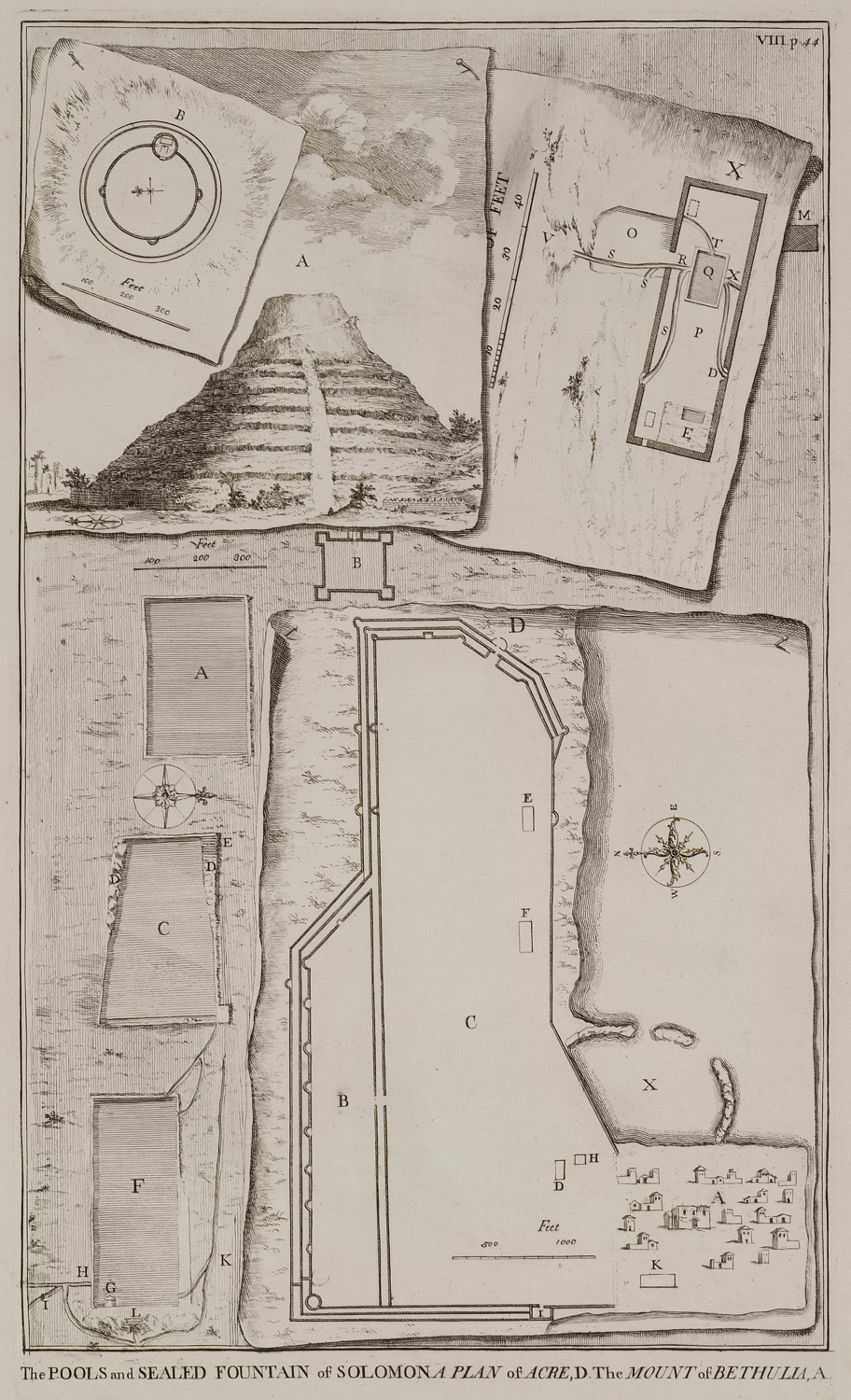 Plan des Bassins de Salomon au 18e siècle Source : Pococke (1745) |