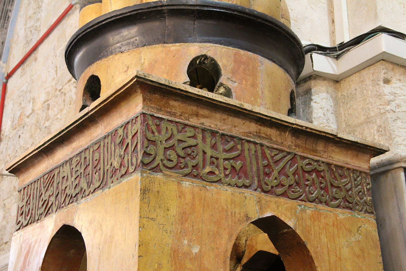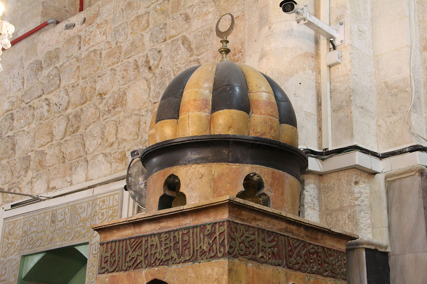 [3] A l’origine ce minbar est fabriqué par le vizir Fatimide Badr al-Jamalî pour le maqâm de Husain à Ascalon/Ashqelon. Après la conquête de cette ville par Saladin, le minbar est conservé et envoyé au Haram. Voir les deux inscriptions, in Sharon (2013), n°2, 3 et p.28-38.