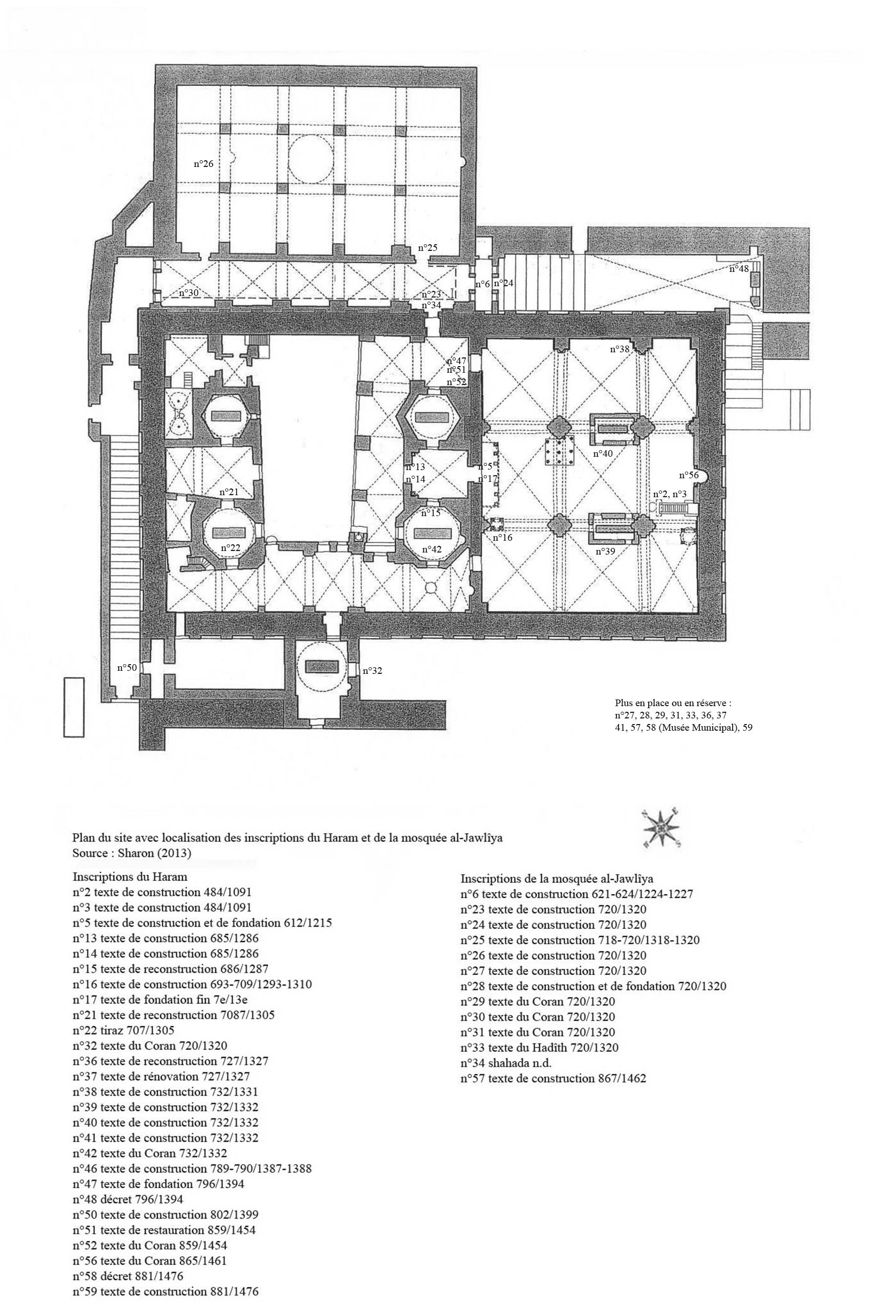 [14] Ce décret est identique à celui gravé sur un pilier de Bâb al-Silsila au Haram à Jérusalem, cf. Berchem (1922), n°186, Sharon (2013), p.197.