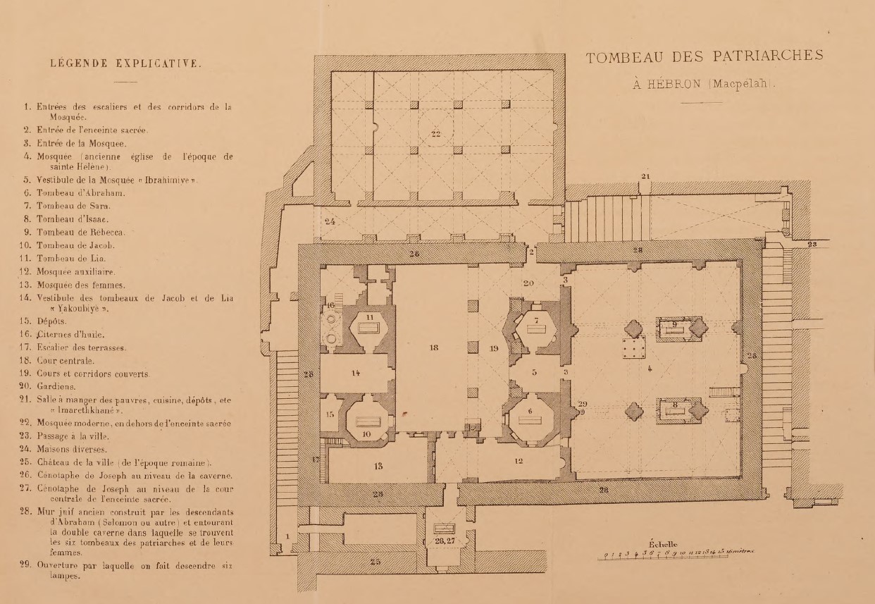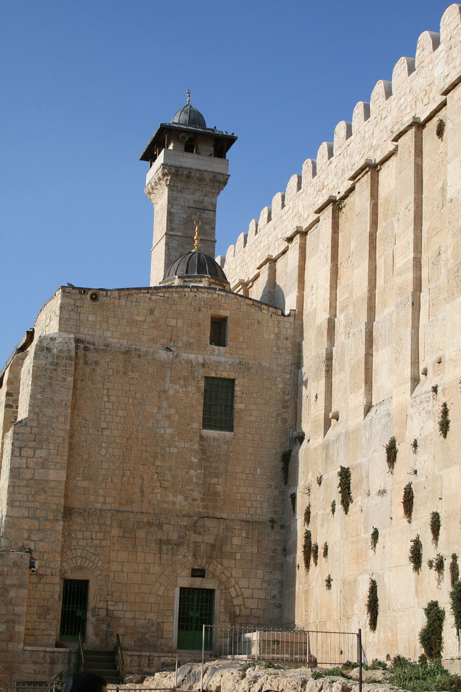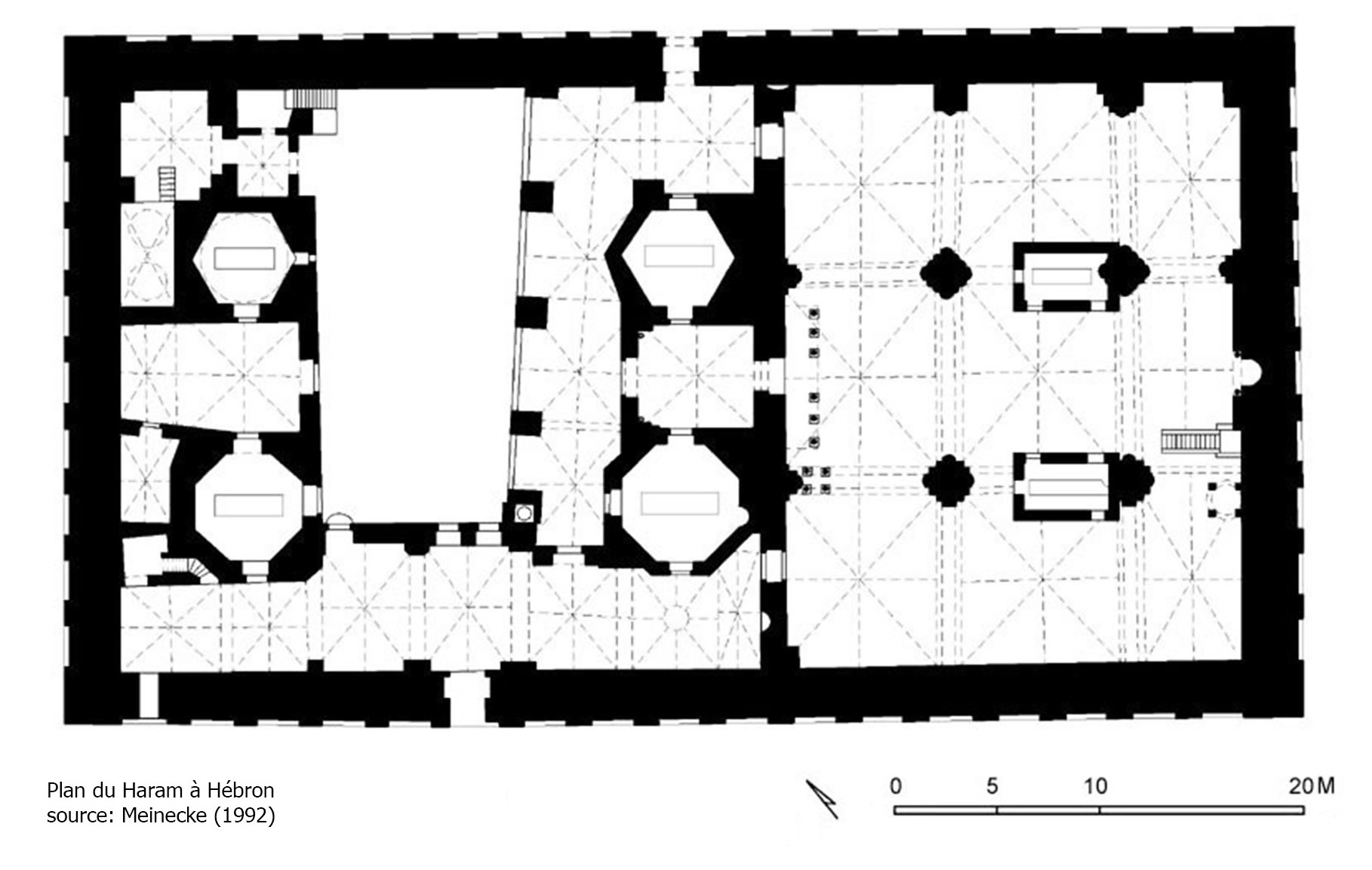 Le site du Tombeau des Patriarches est un ensemble architectural construit en plusieurs phases parmi lesquelles la construction de l’enceinte (29x53m) par l’empereur romain Hérode (37-4 BC), et de l’église à l’intérieur (21x29m) qui est transformée en mosquée vers le 10e siècle.[1] Un séisme en 425/1033 affecte l’édifice qui ne semble pas être réparé avant la conquête Croisée en 1099 où la mosquée est convertie en église et est équipée d’un toit en pente (toujours en place actuellement). En 1100, l’enceinte est prise par Geoffroy de Bouillon qui en fait une seigneurie. Plus tard, l’installation seigneuriale est déplacée vers une annexe fortifiée accolée au sud-ouest du Haram, la citadelle. Cet édifice sera tour à tour utilisé comme khân, madrasa et baraquement au 19e siècle.