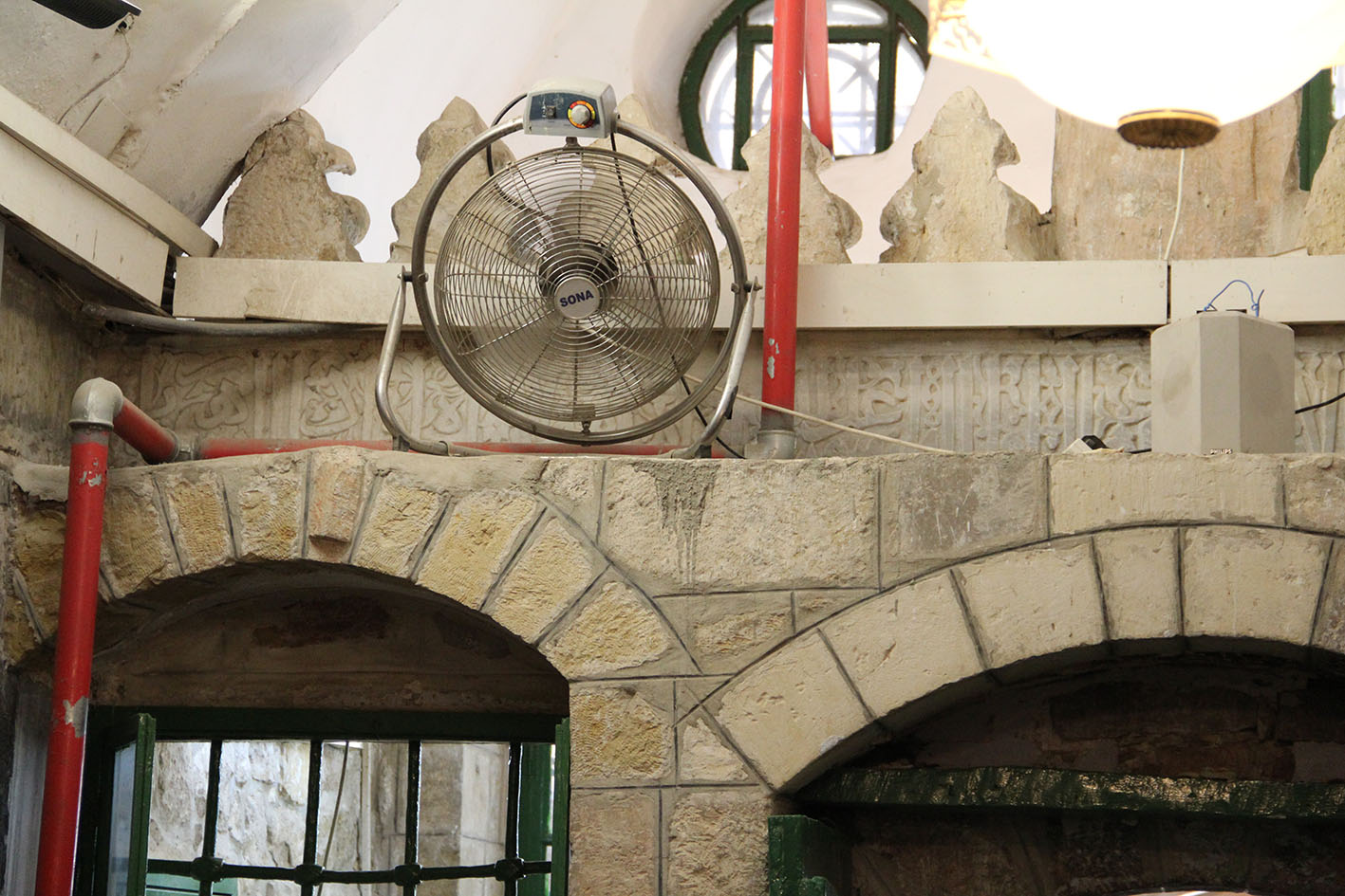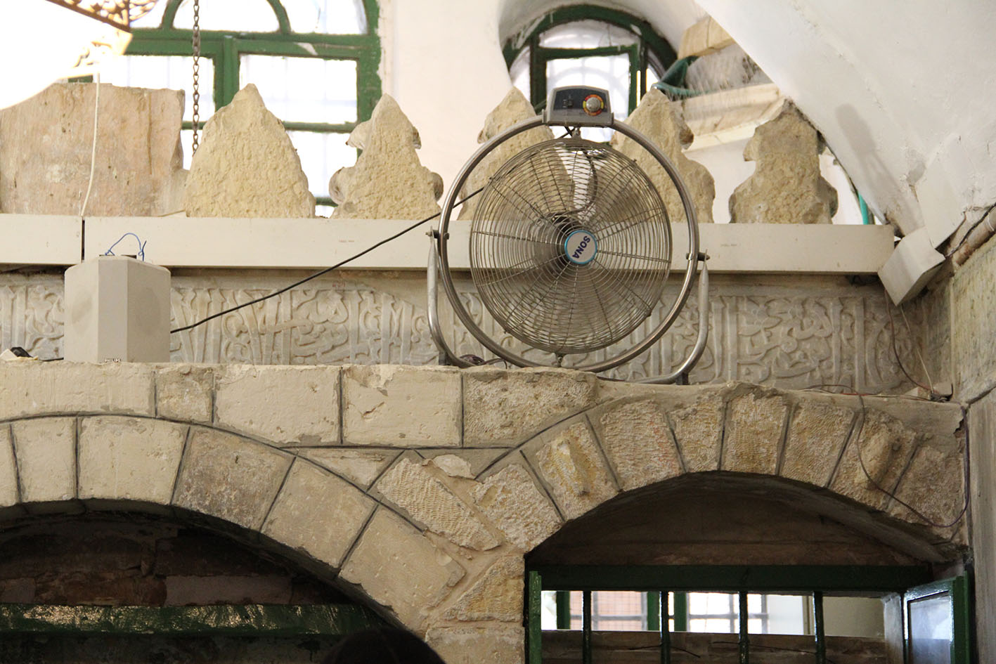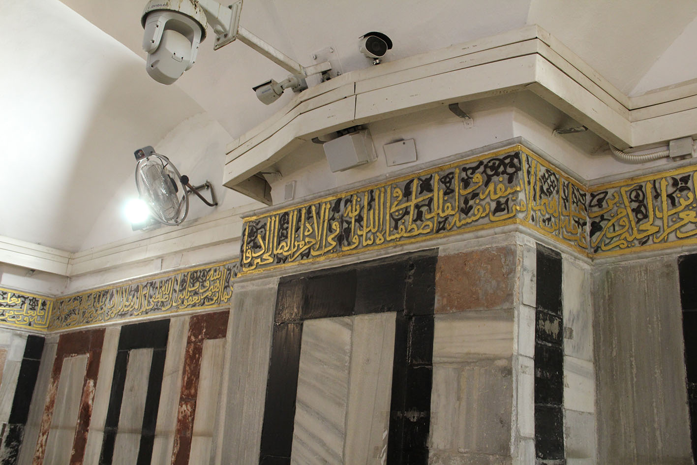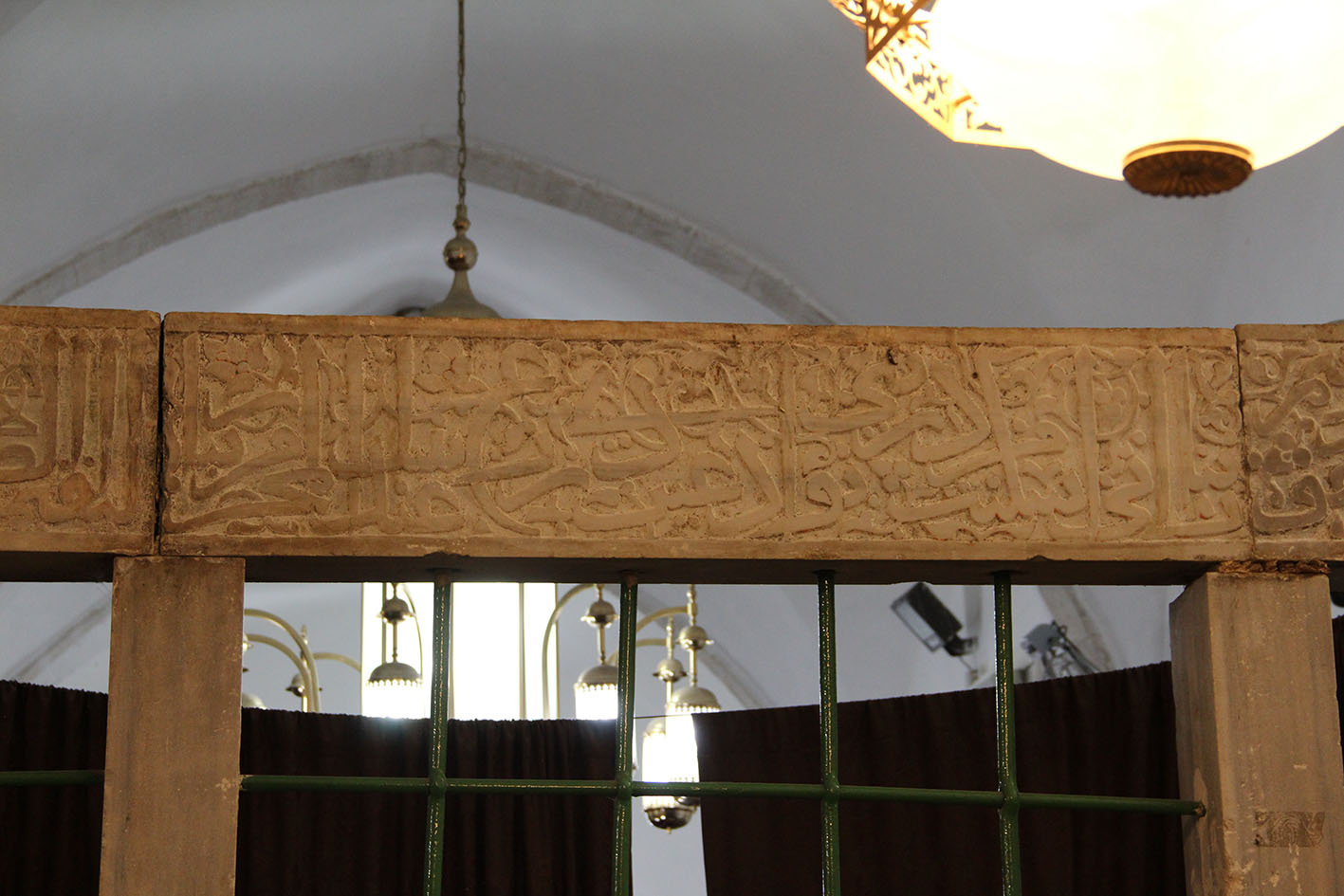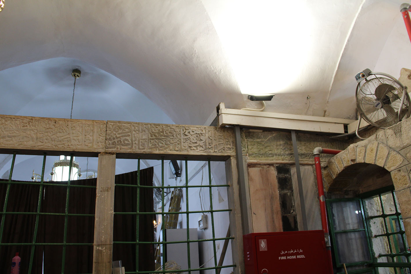 720/1320. Texte de construction incomplet reconstitué d’après 6 fragments (146x33, 143x33, 89x33, 81x31, 148x33, 131x33), anciennement entreposé au Haram, replacé sur la porte et les fenêtres du mur ouest face au corridor qui sépare la mosquée du sanctuaire (inscription n°25, ill.15-20).[11]