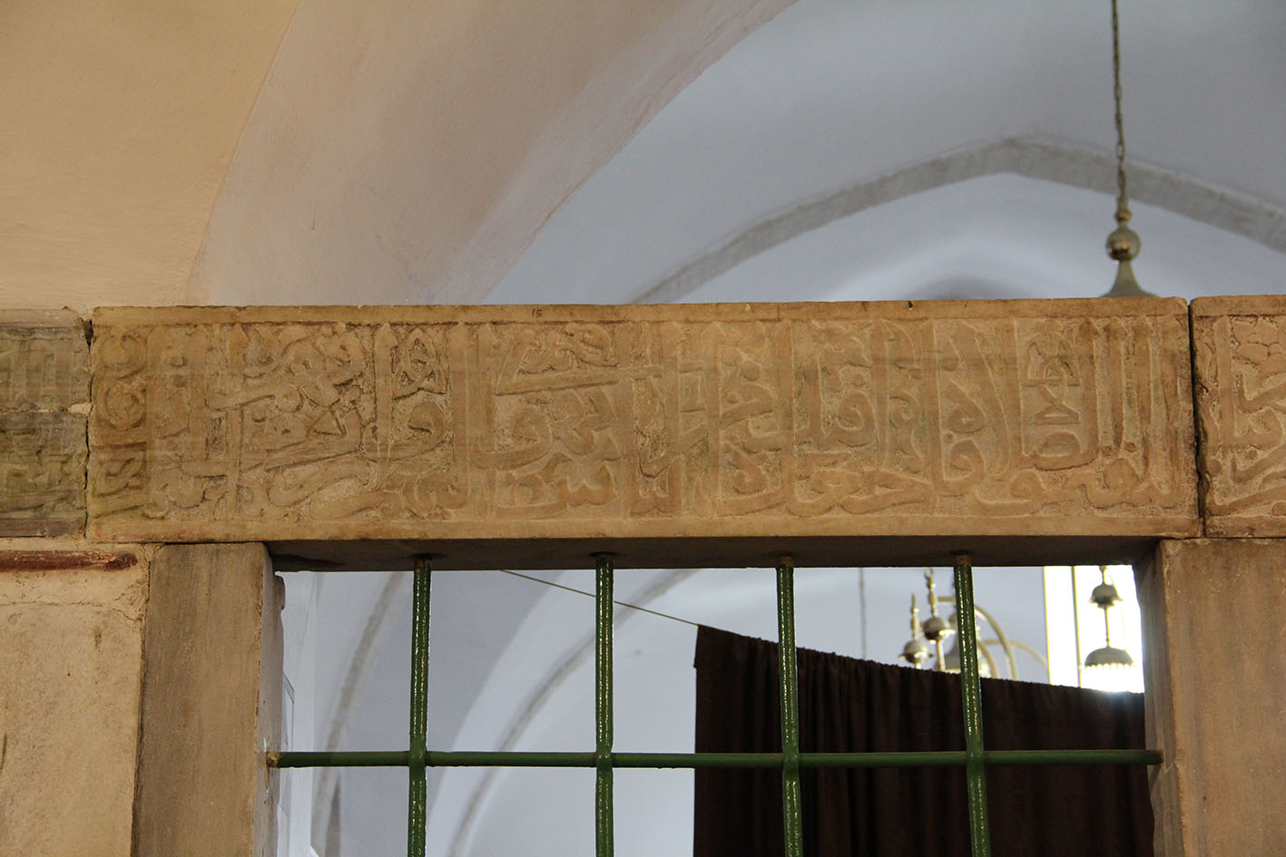 L’inscription en plusieurs parties, exposée sur l’estrade au nord de la salle de prière (inscription n°26, ill.21-27), concerne l’achèvement des ouvertures grillagées (shababîk) et des portes de la façade ouest de la mosquée.