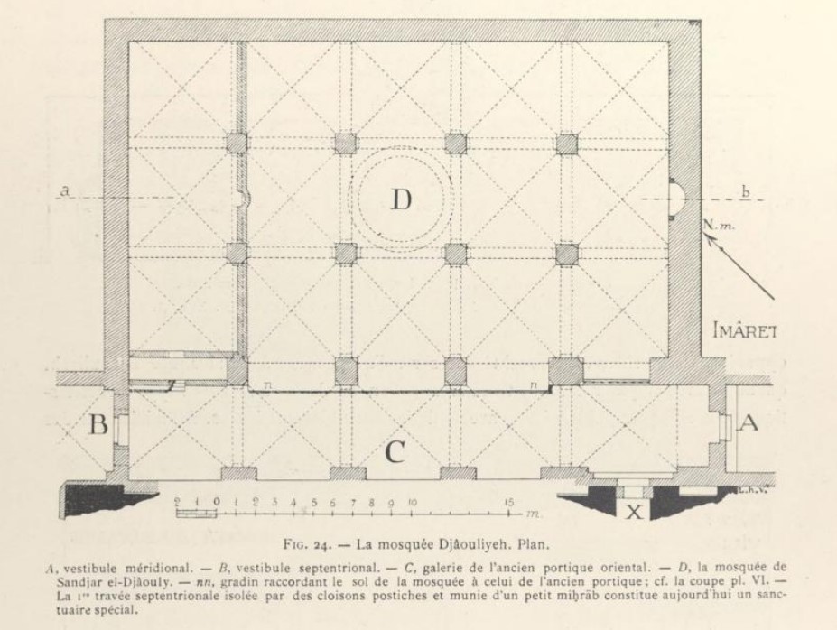 621-624/1224-1227. Texte de construction 7 lignes (50x32) anciennement sur la porte, avec inscription n°24, séparant le portique P (riwaq) du corridor Q (dihliz), disparue (inscription n°6).[8]
